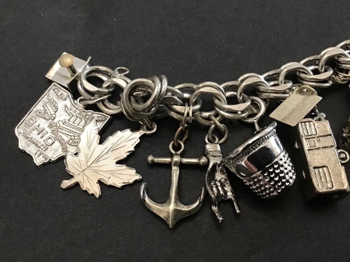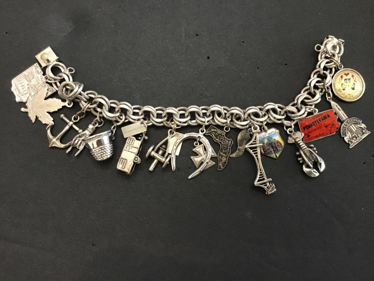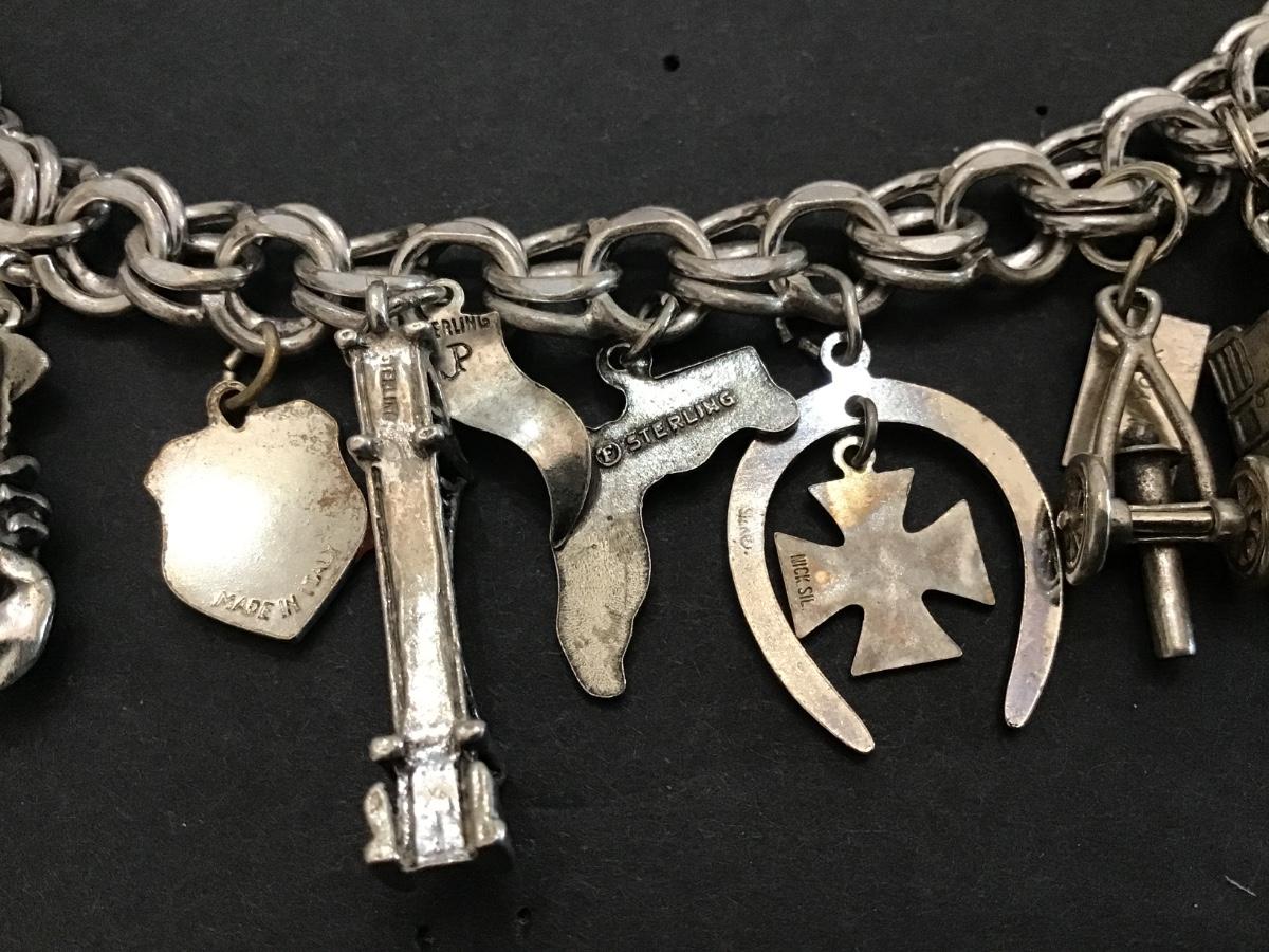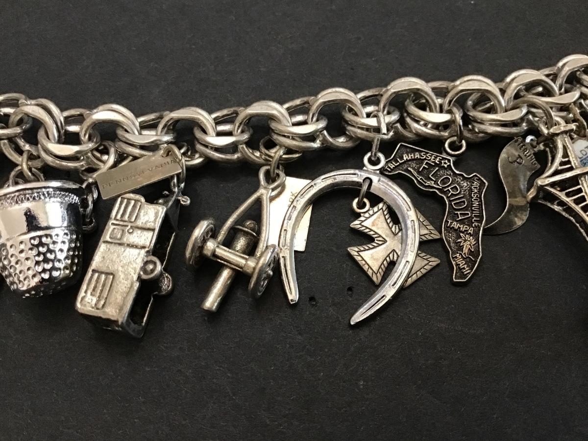 Vintage Sterling Silver Bracelet With Mostly Sterling Charms