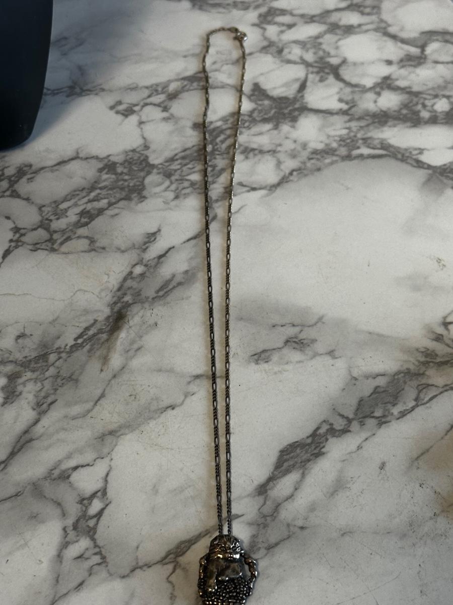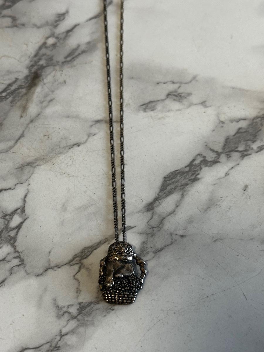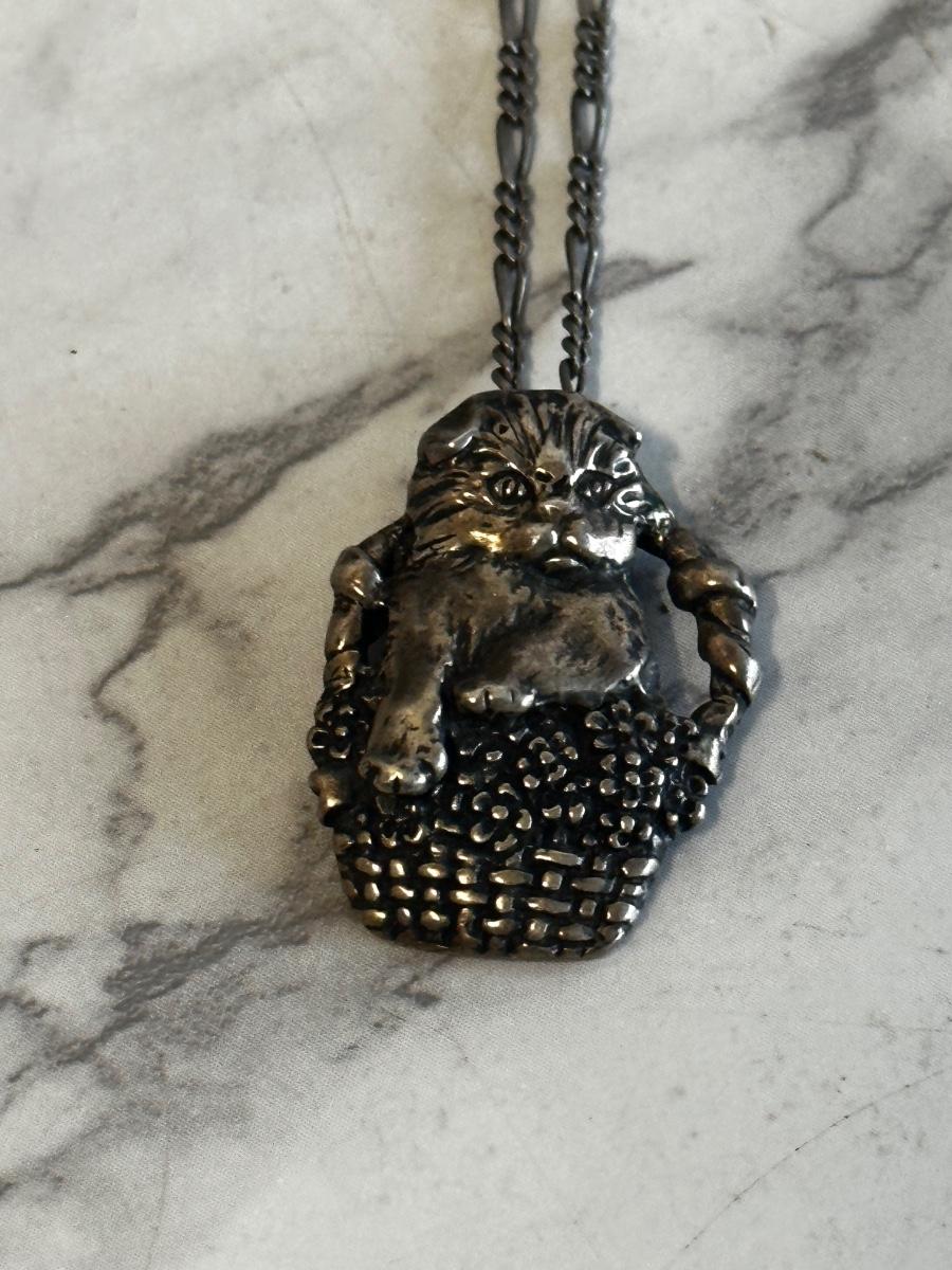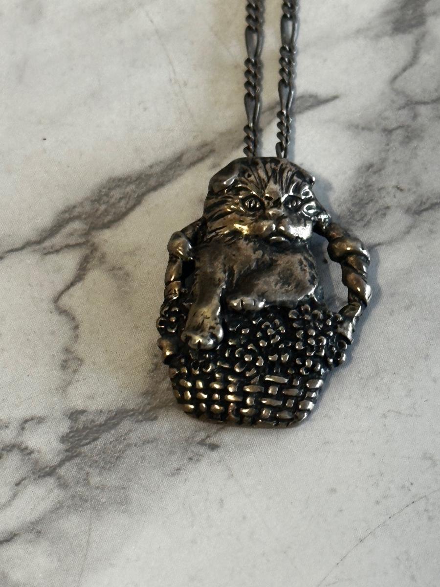 Vintage Sterling Silver cat in basket pendant with silver chain