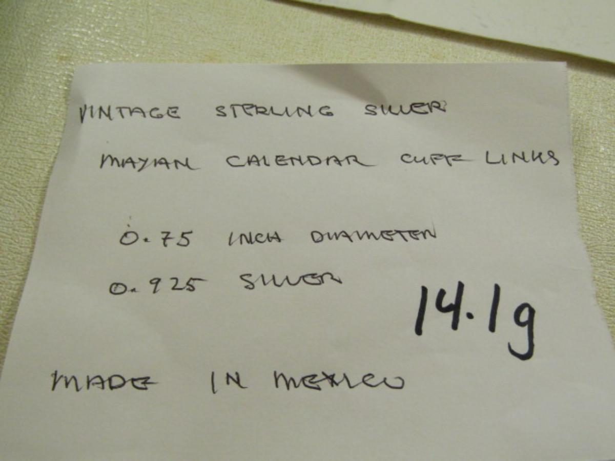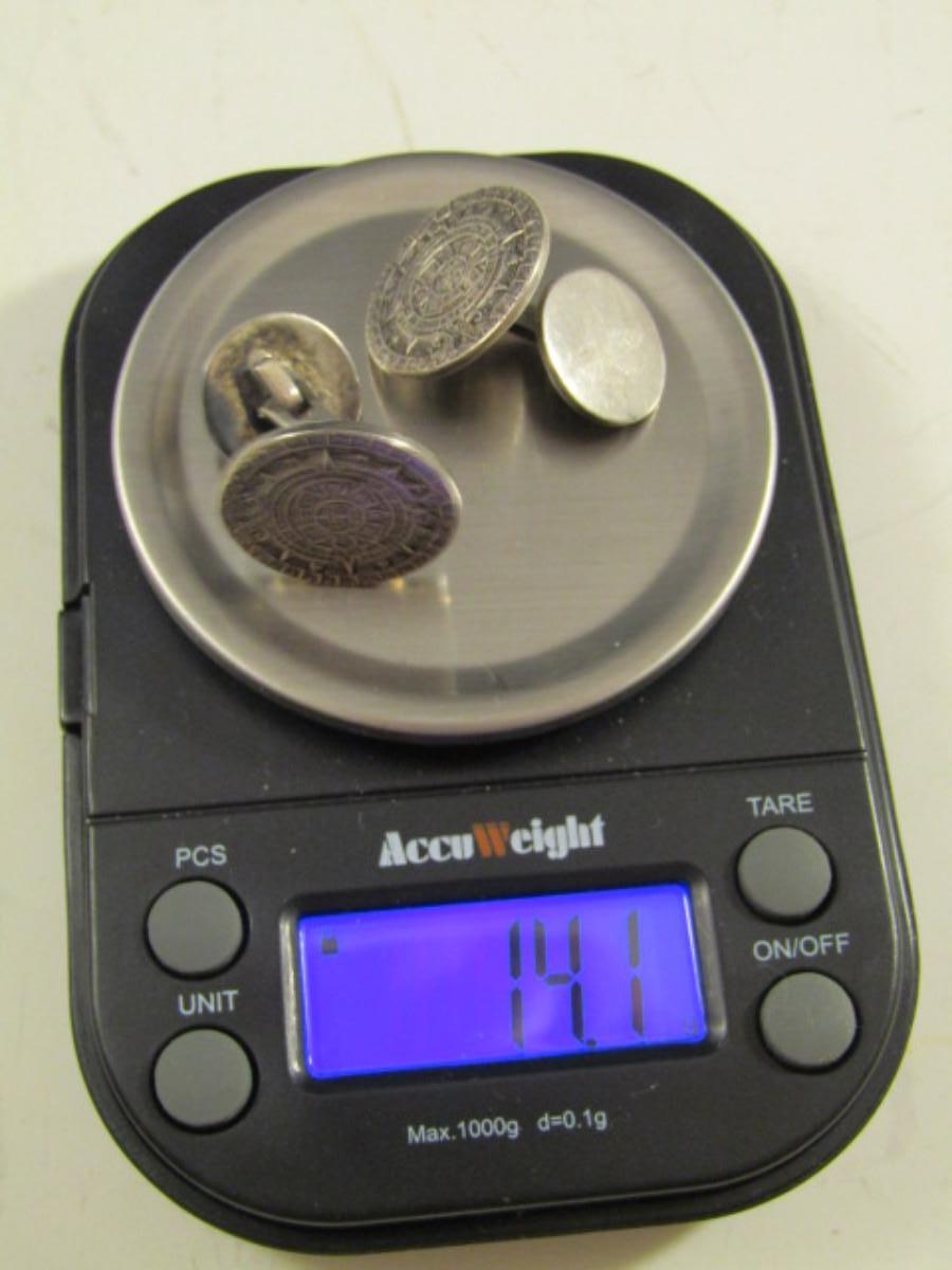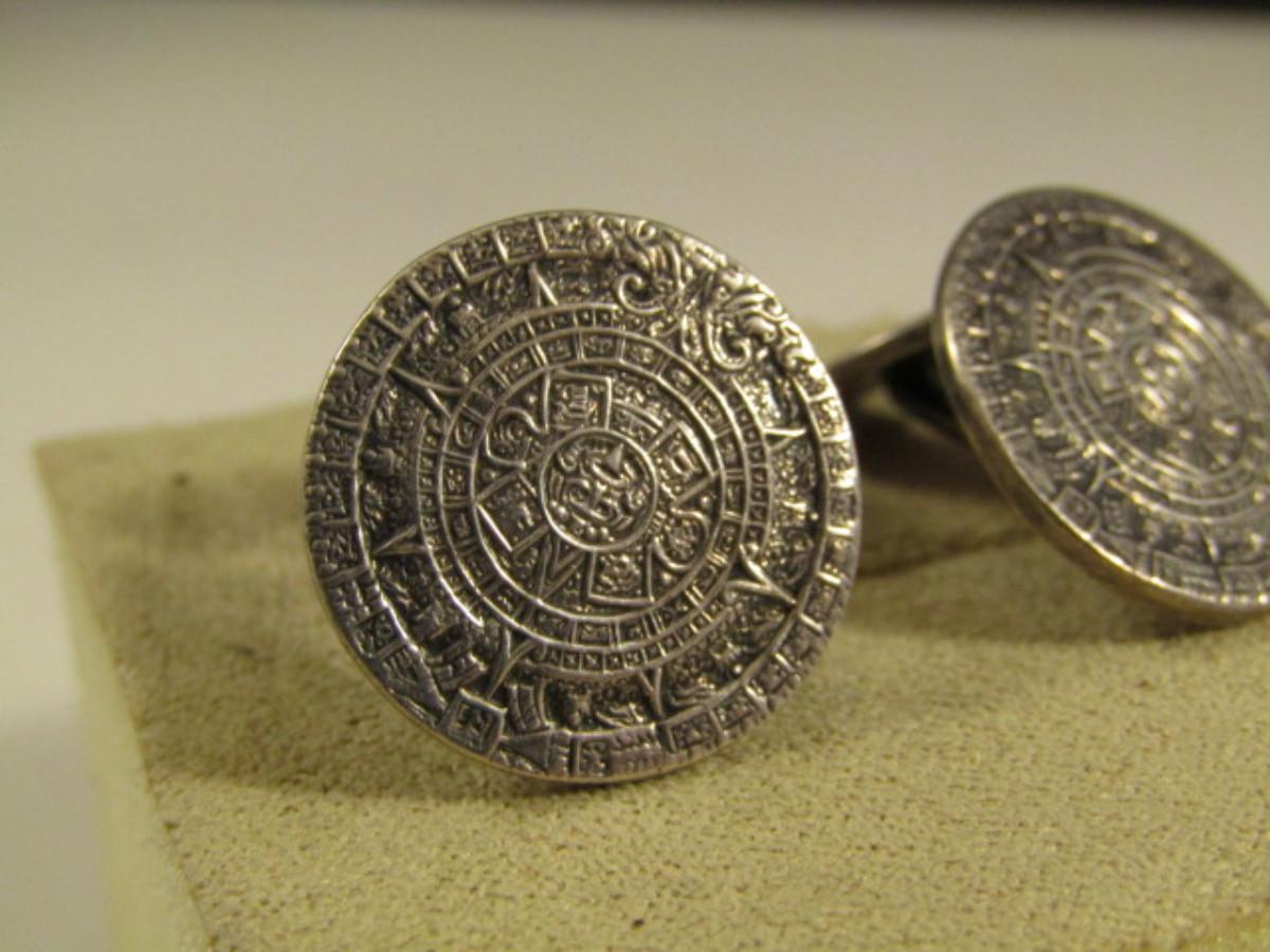 Vintage Sterling Silver Cufflinks- Mayan Calender Design- Approx 14.1 Grams (#7)