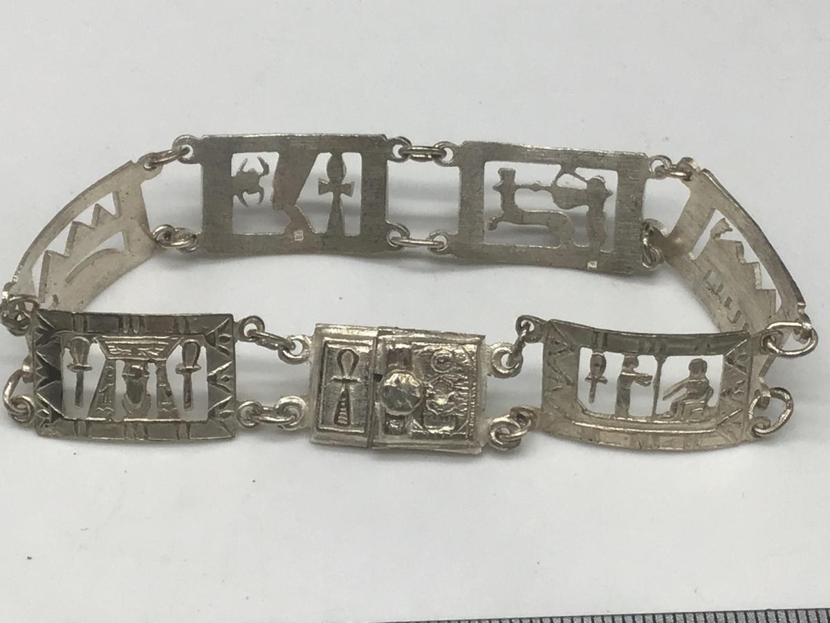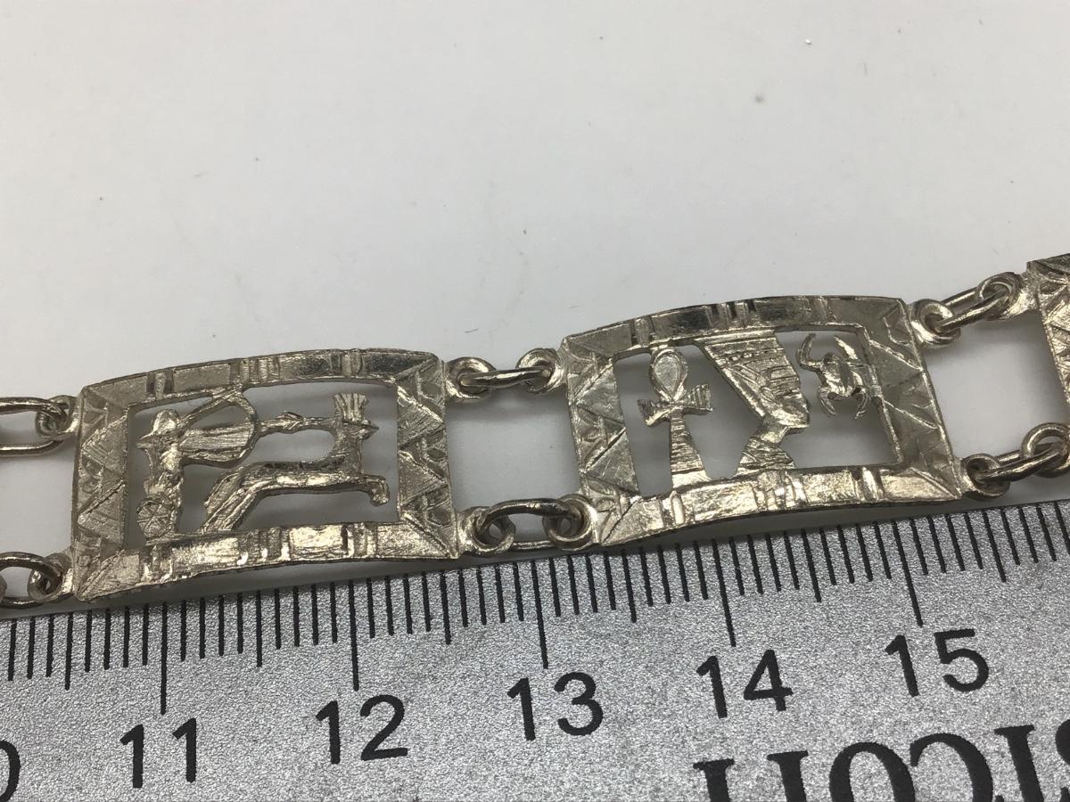 Vintage Sterling Silver Egyptian panel Style Bracelet