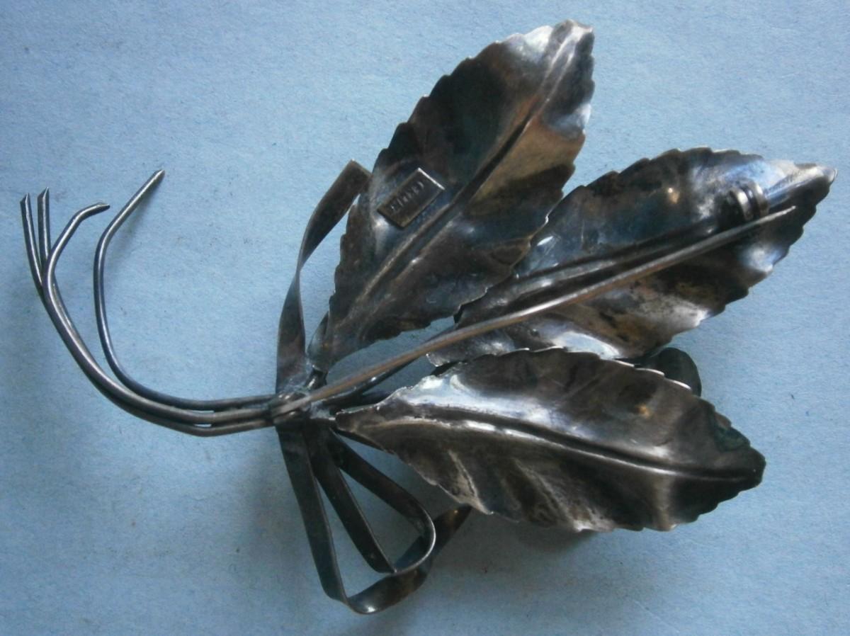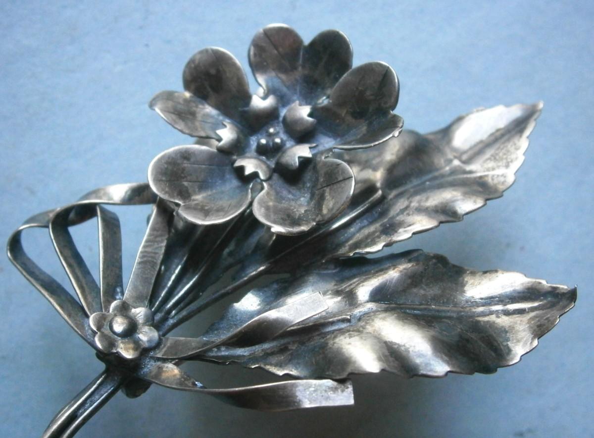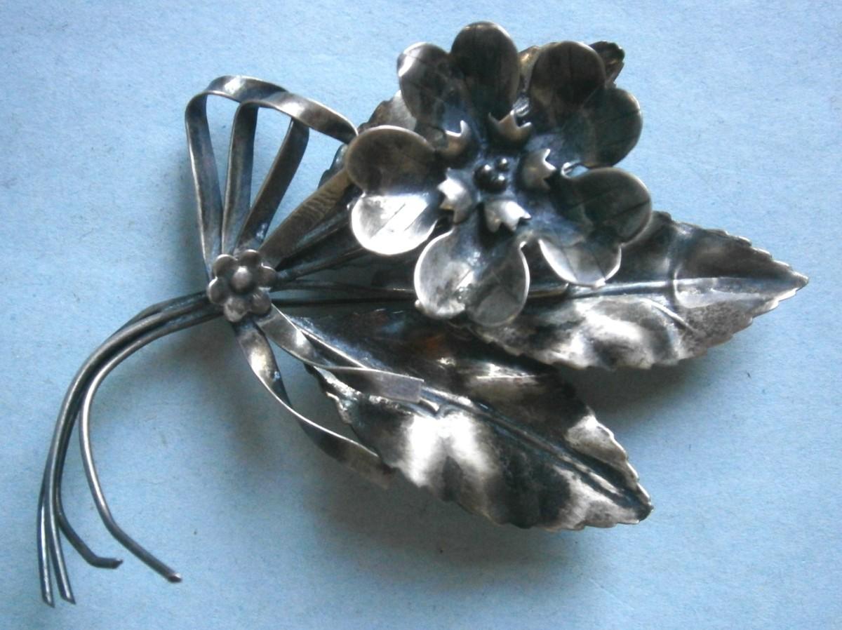 Vintage Sterling Silver Floral Pin / Brooch, 3 1/4 in. long, needs a little polish.