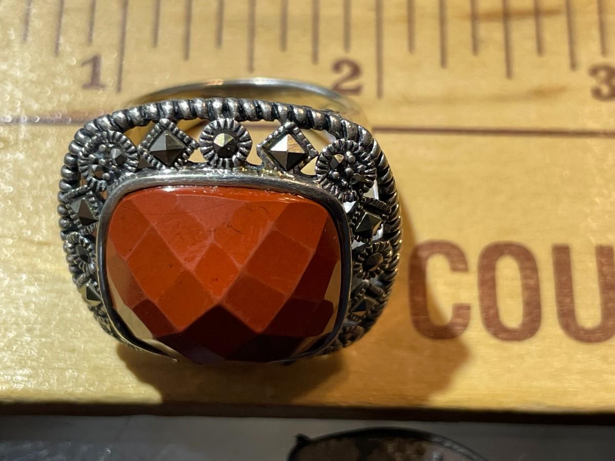 Vintage Sterling Silver Large Carnelian Stone Ring Size 7-3/4 in Good Preowned Condition. $5 Domestic Shipping.