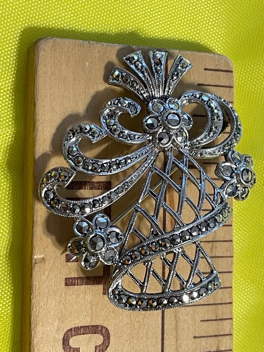 Vintage Sterling Silver Marcasite Flower Bouquet Pin/Brooch in VG Preowned Condition.