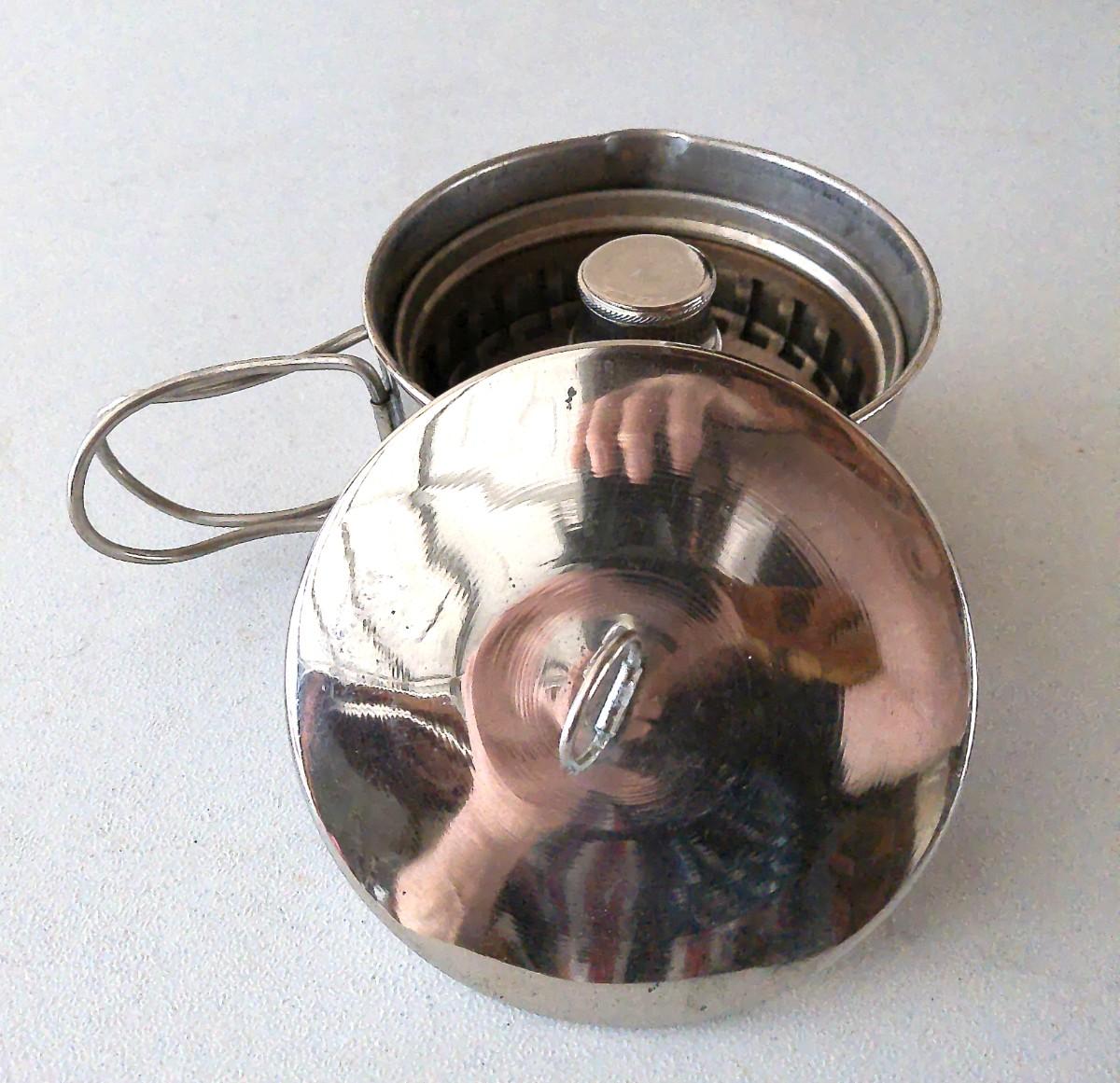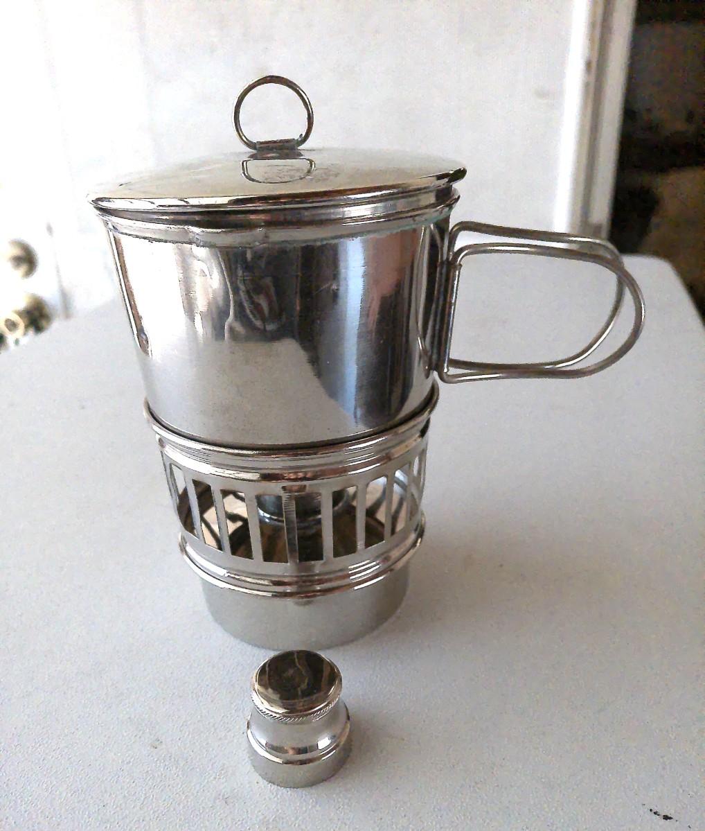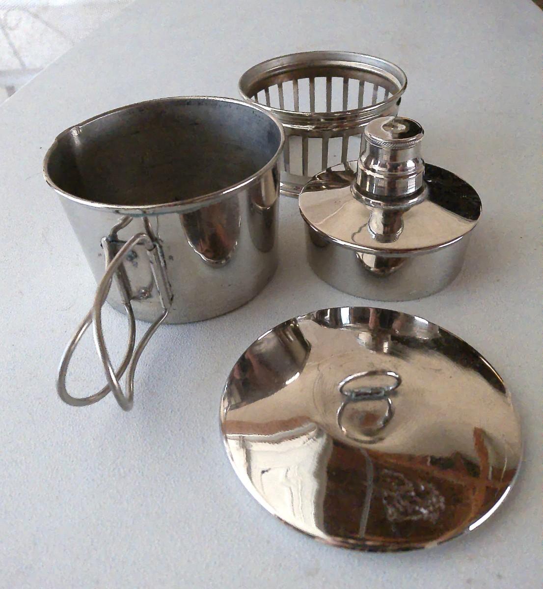 Vintage Sterling Silver Military Cook pot with stand and burner