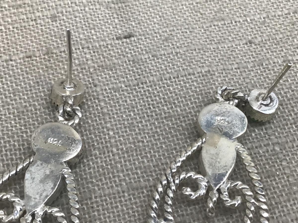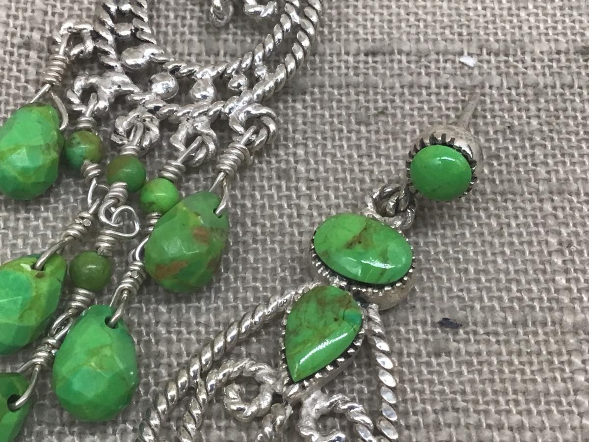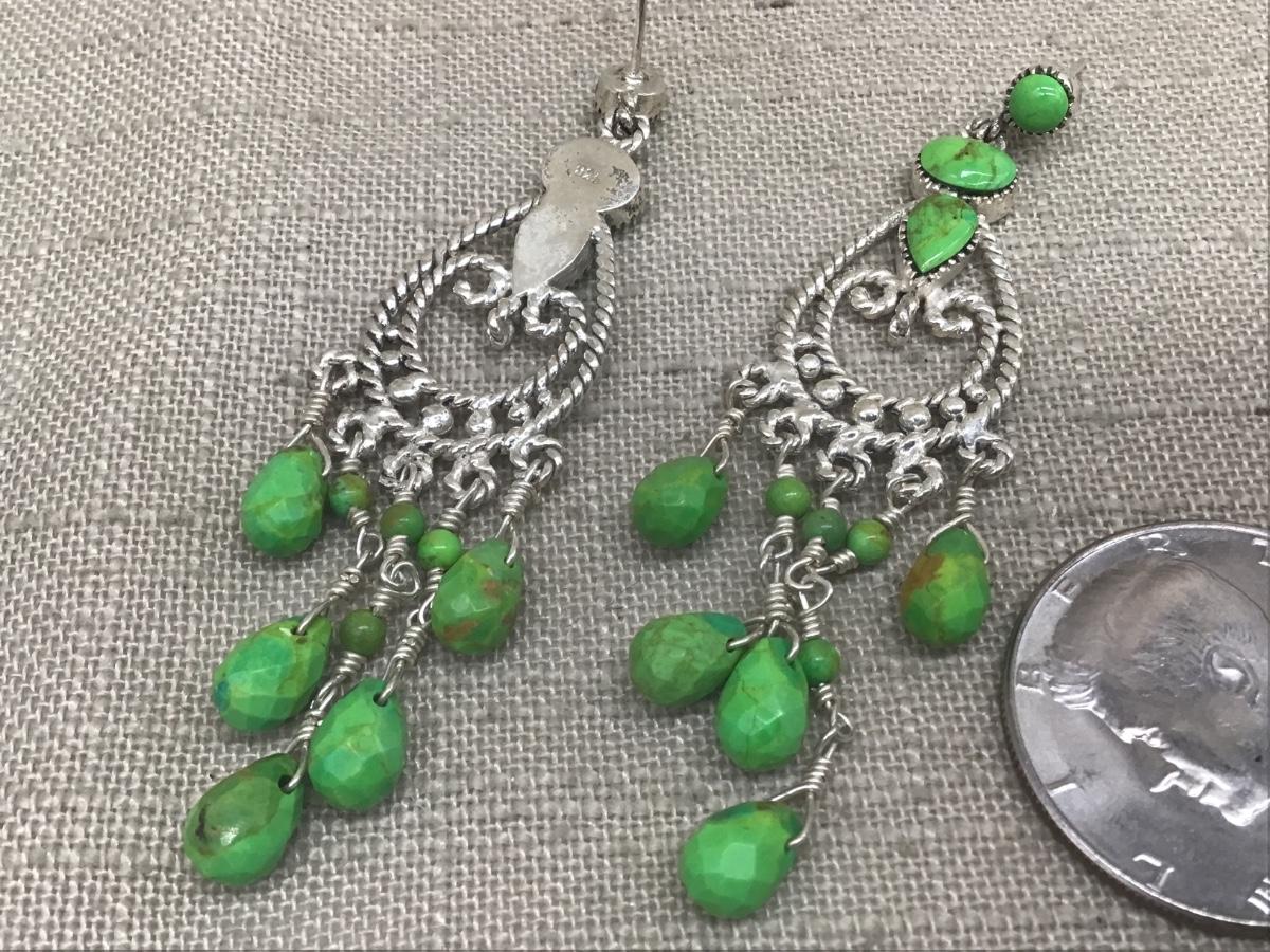 Vintage Sterling Silver & Mohave Turquoise Green Stone Mexican large Dangle Earrings