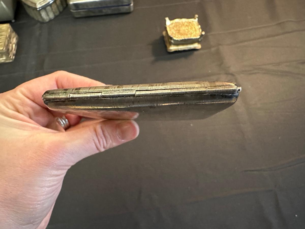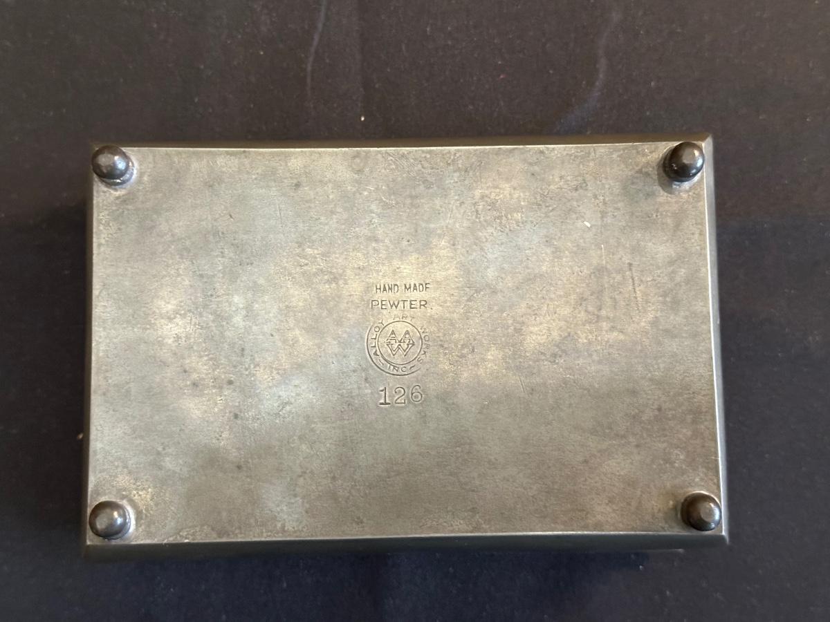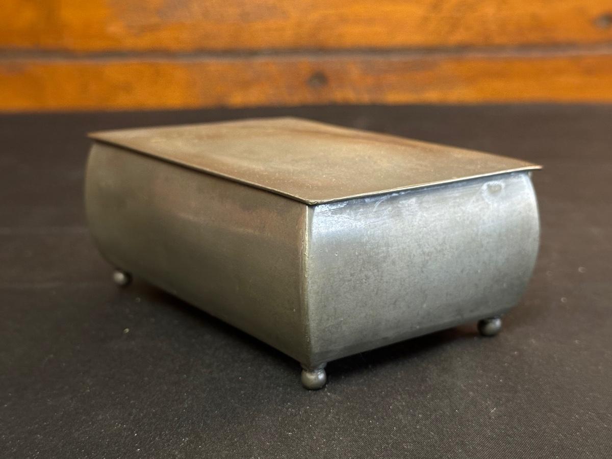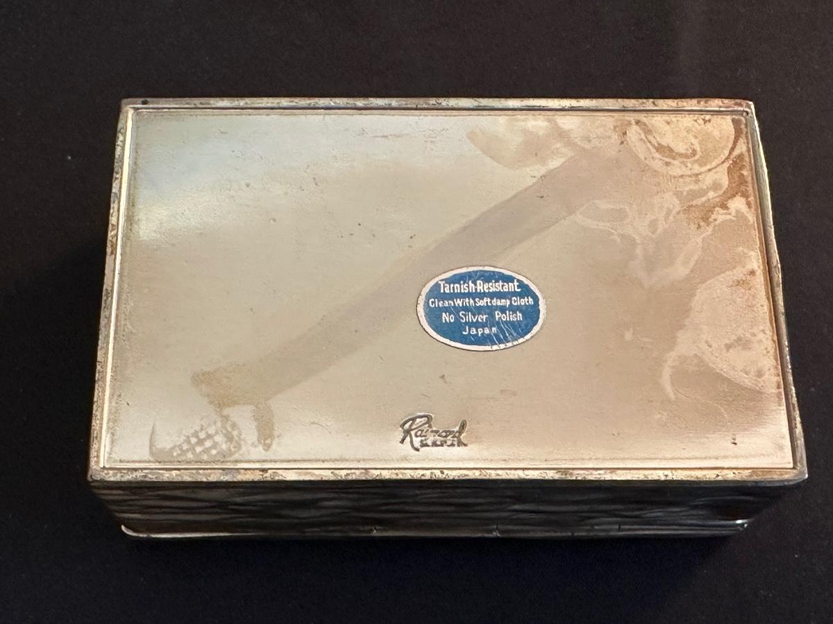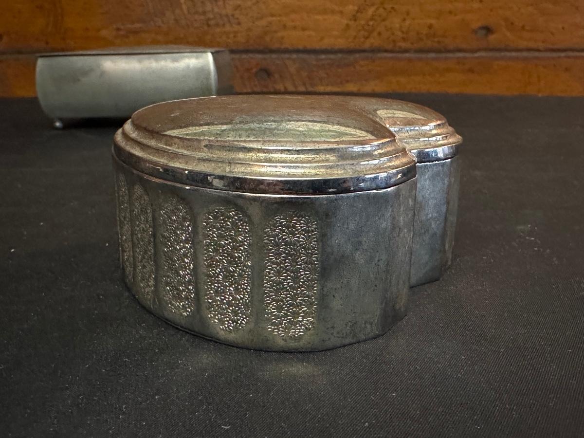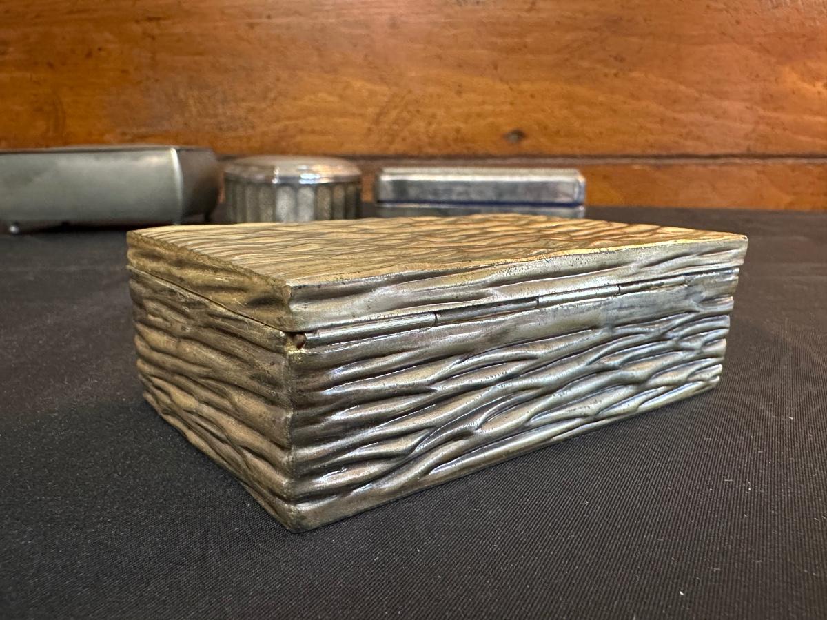 Money clip has “Sterling”. Other boxes are seemingly silver plated, metal or Pewter.