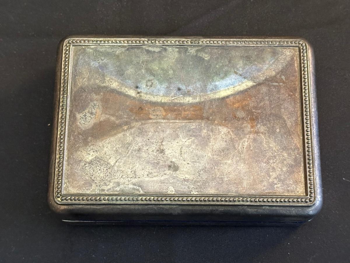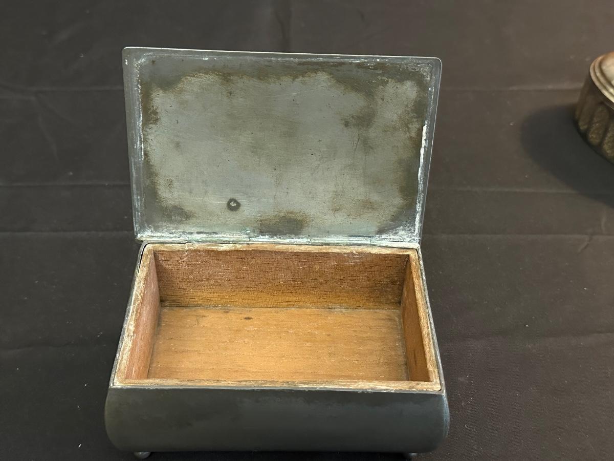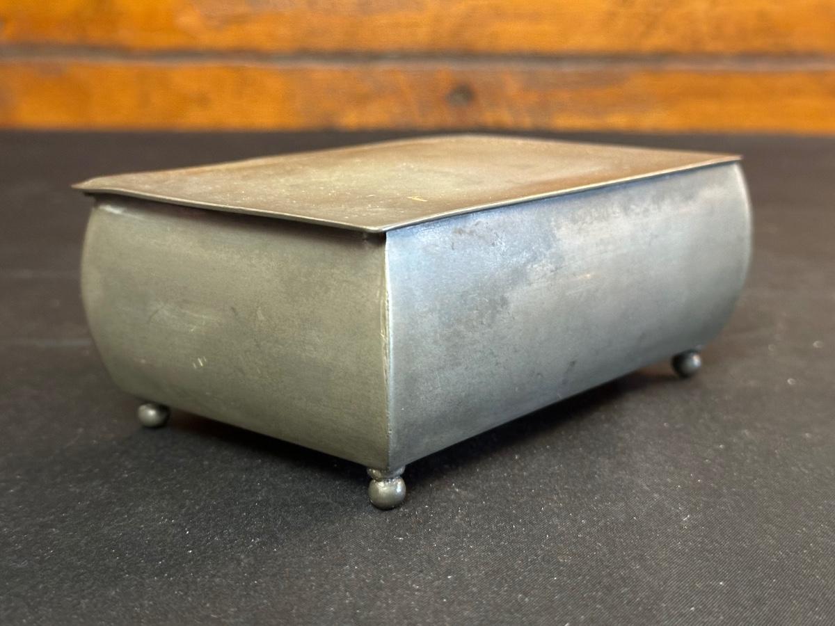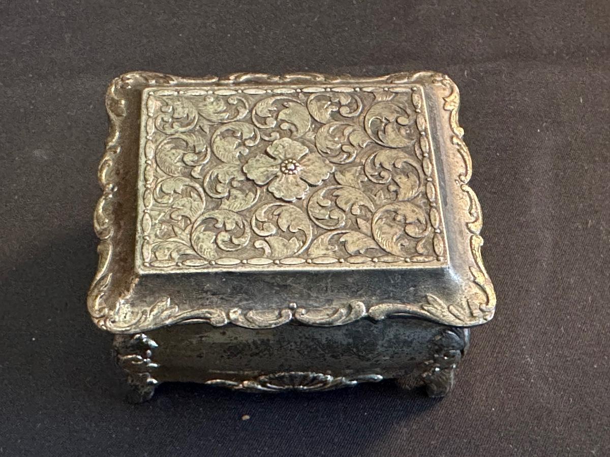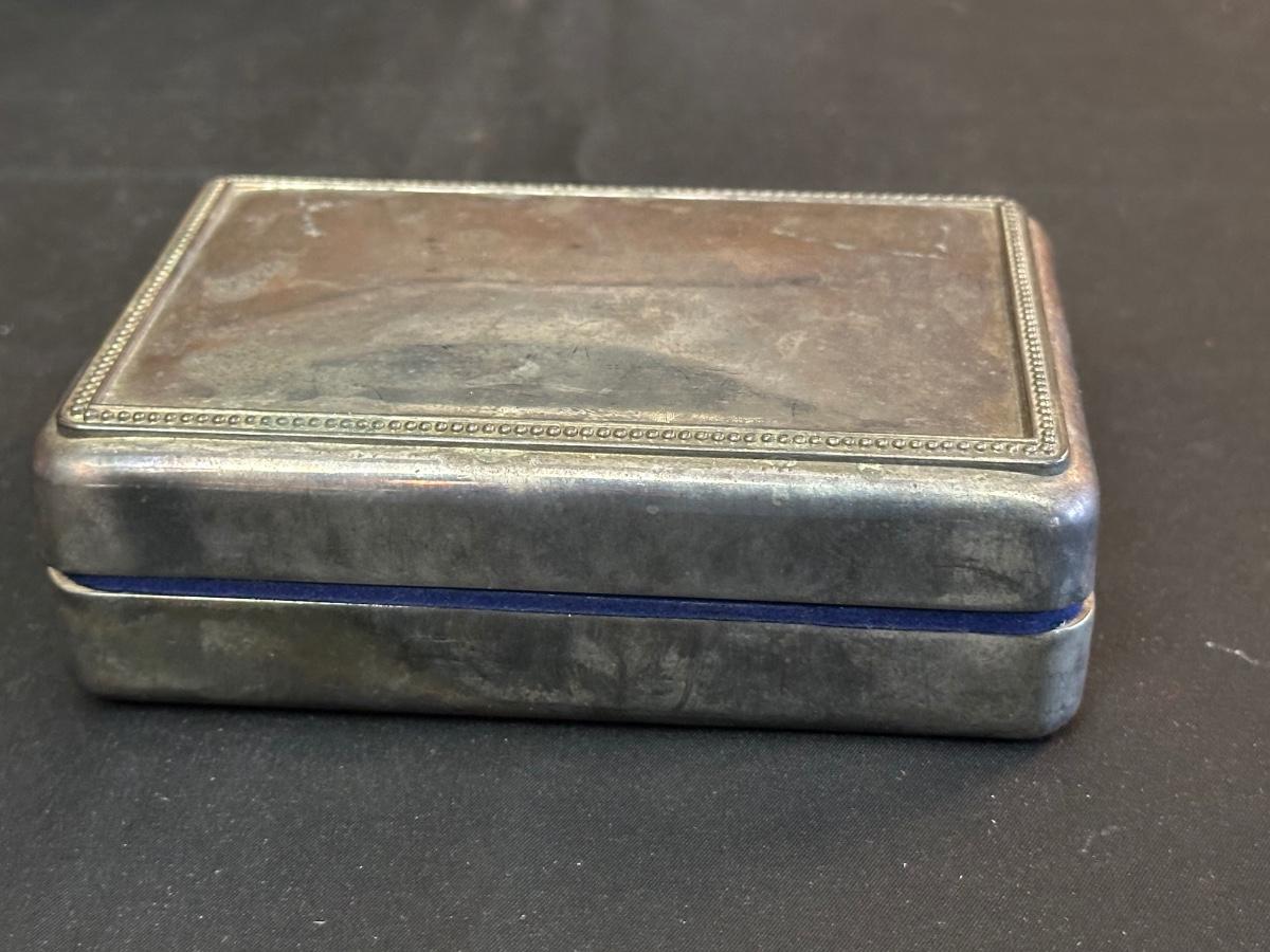 Money clip has “Sterling”. Other boxes are seemingly silver plated, metal or Pewter.