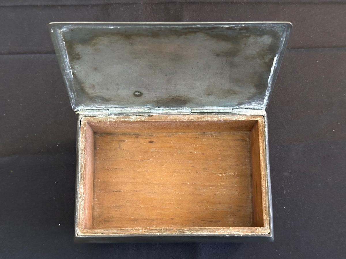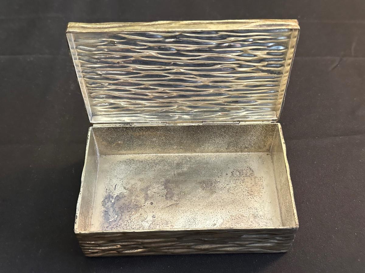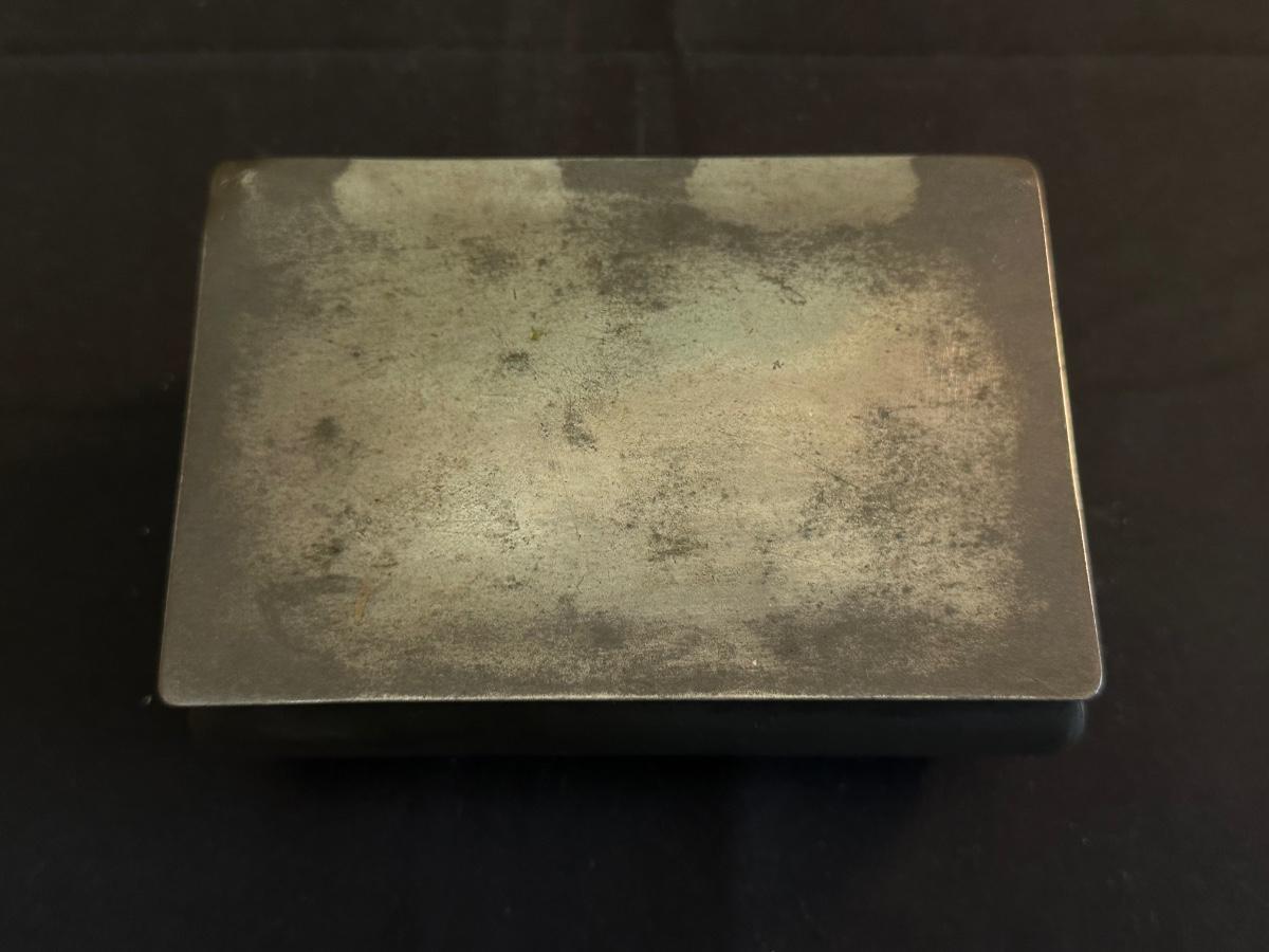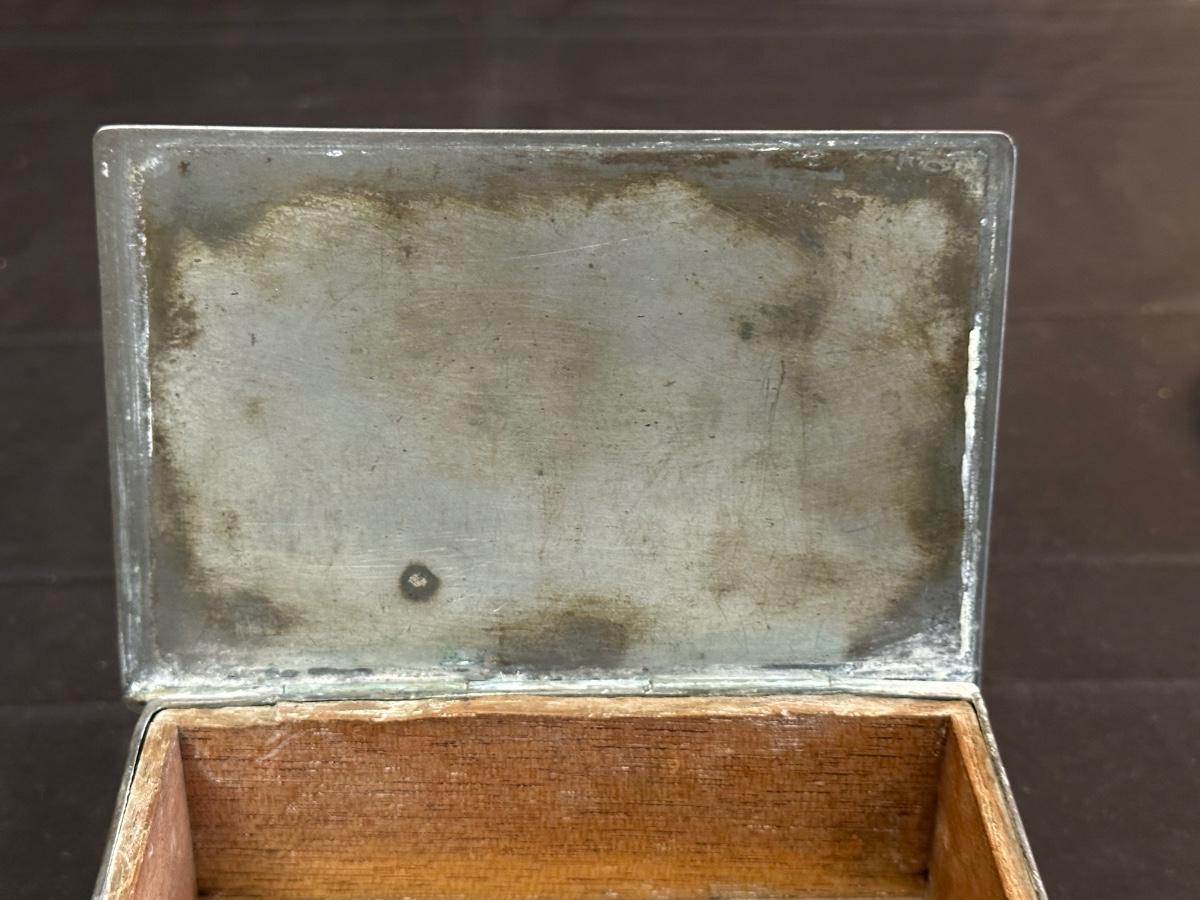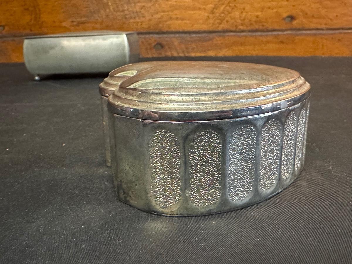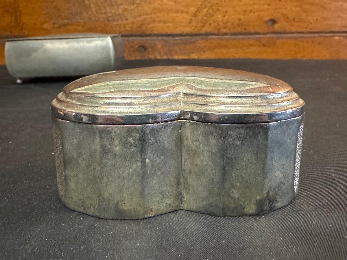 Money clip has “Sterling”. Other boxes are seemingly silver plated, metal or Pewter.