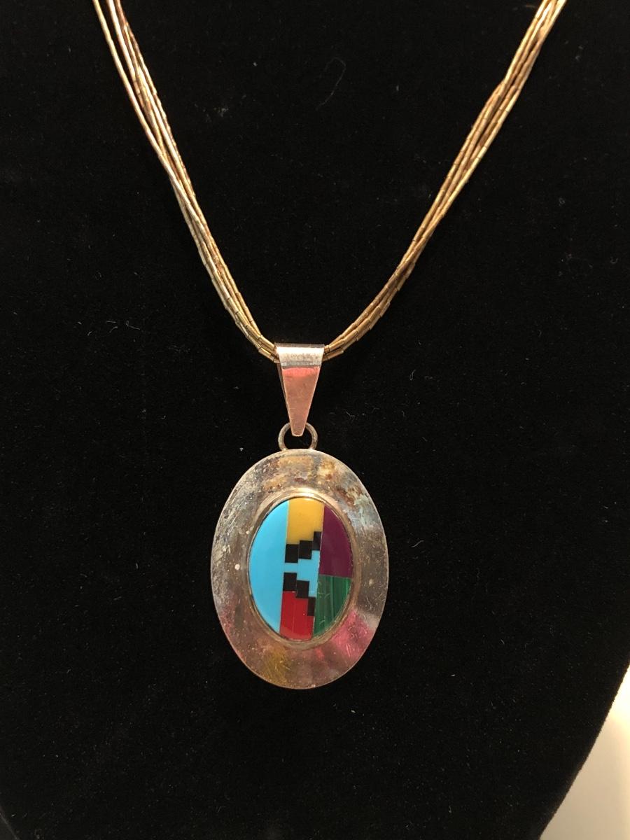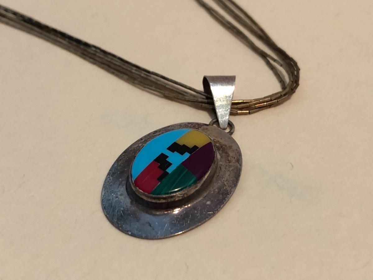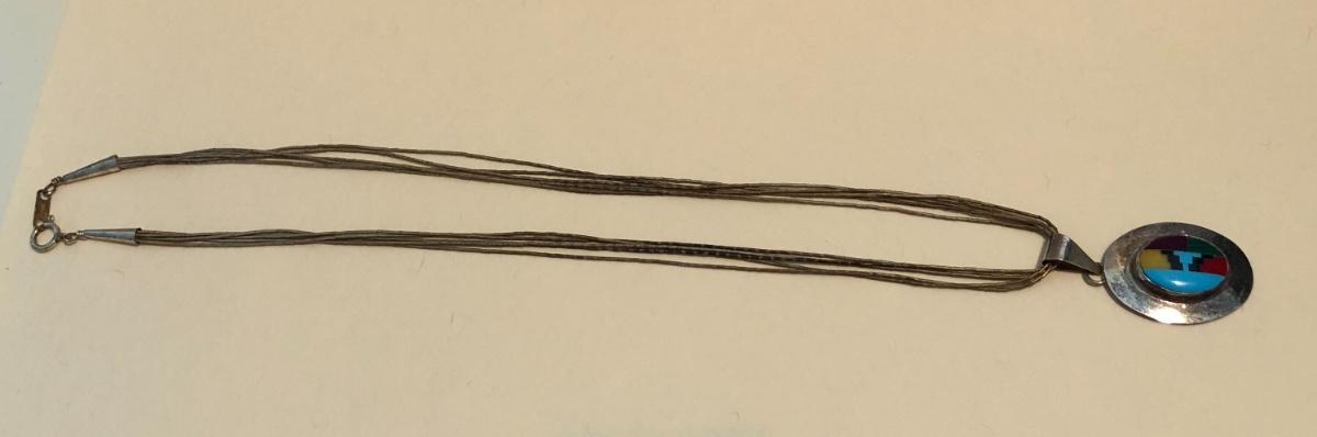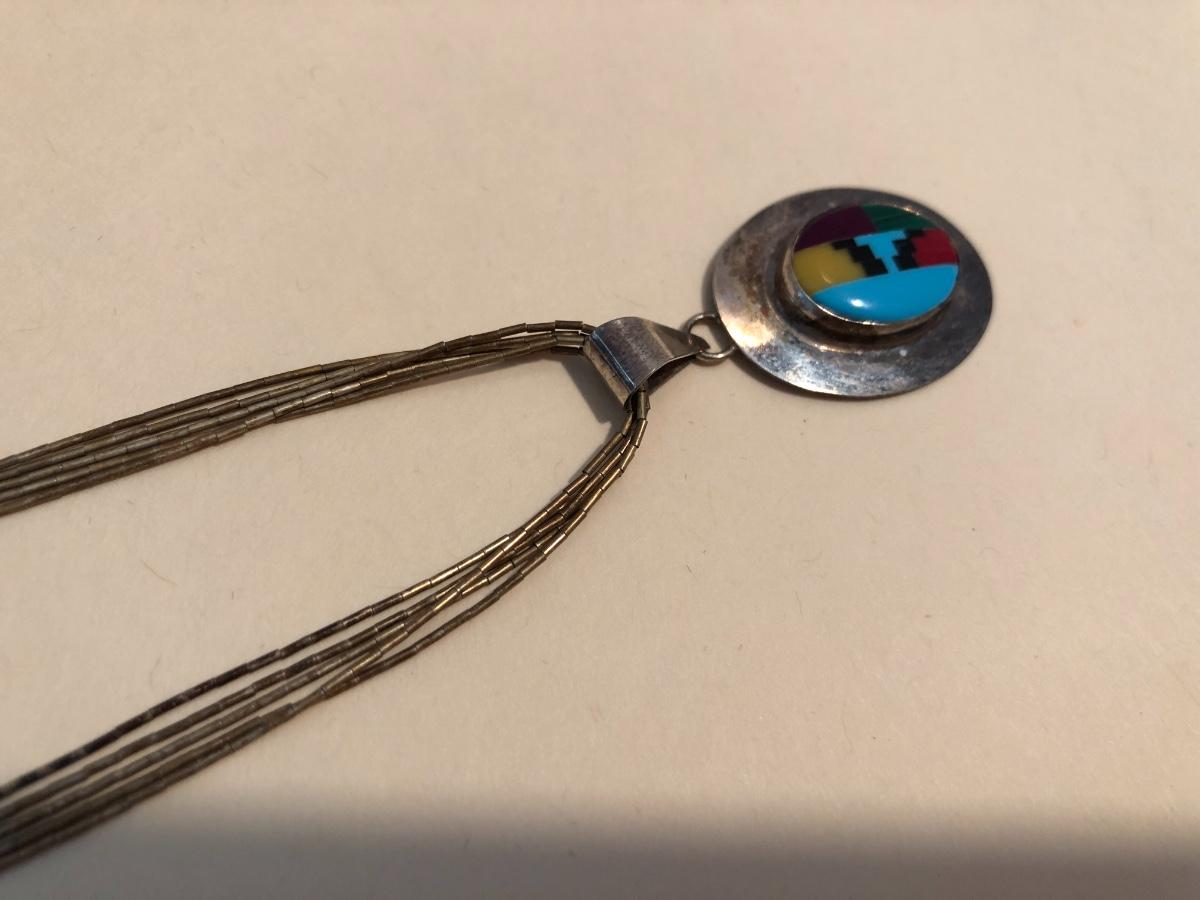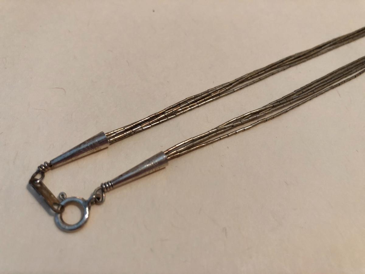 5 strand Liquid Silver necklace with most likely Native American sterling silver pendent.