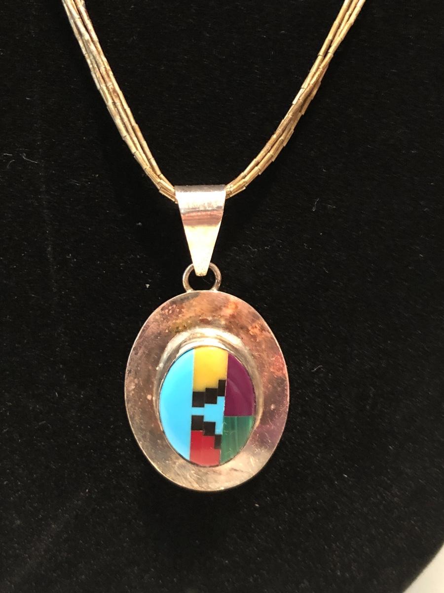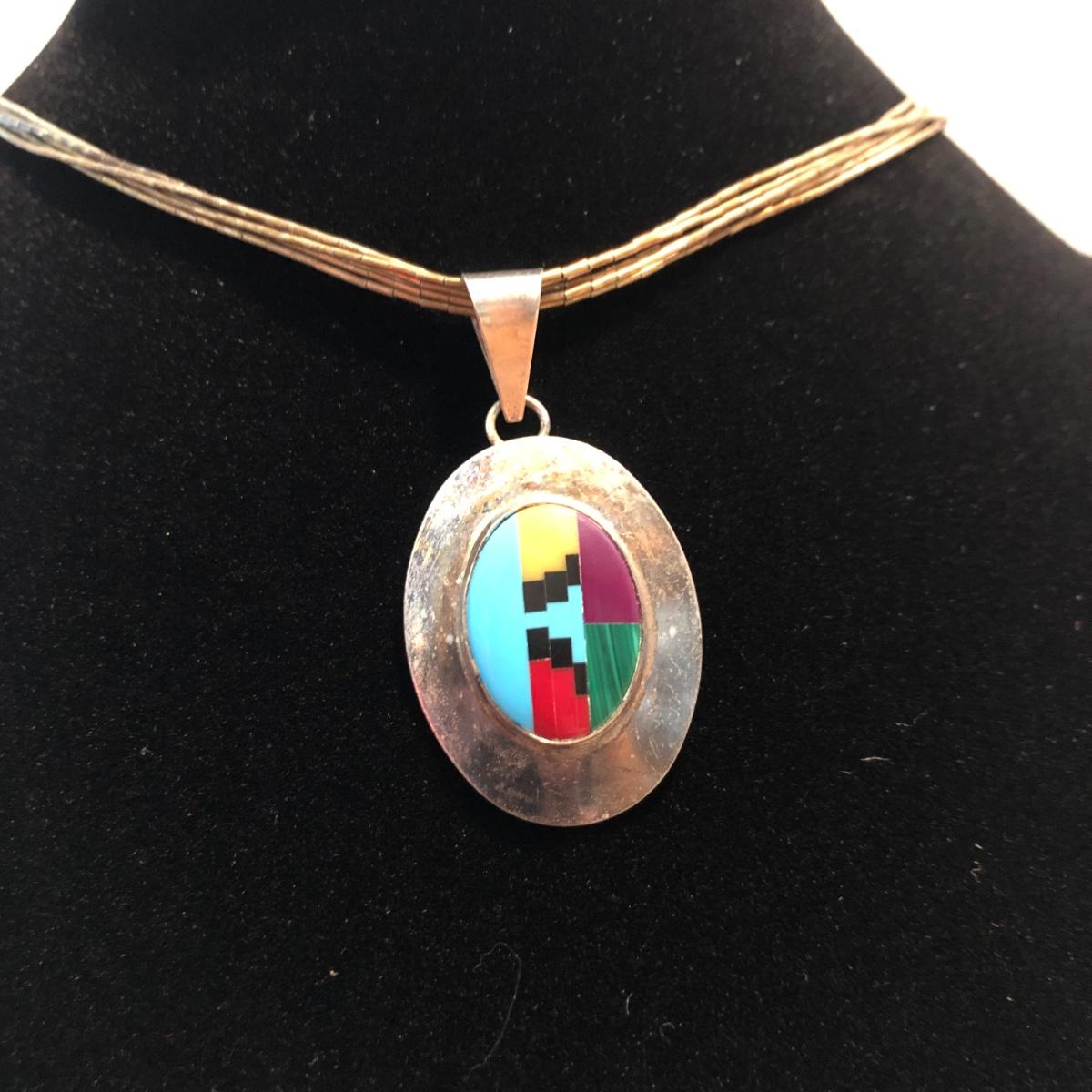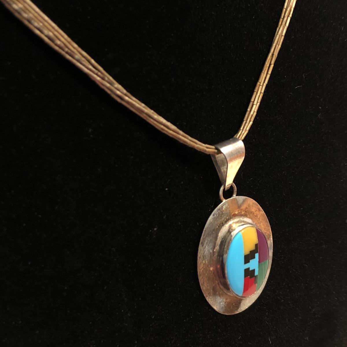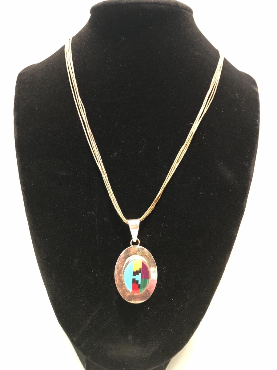 5 strand Liquid Silver necklace with most likely Native American sterling silver pendent.