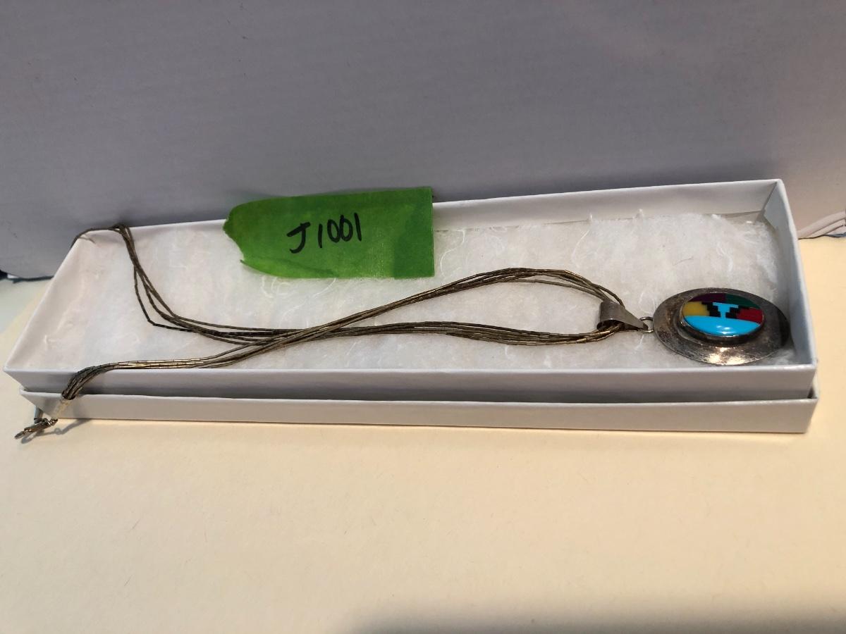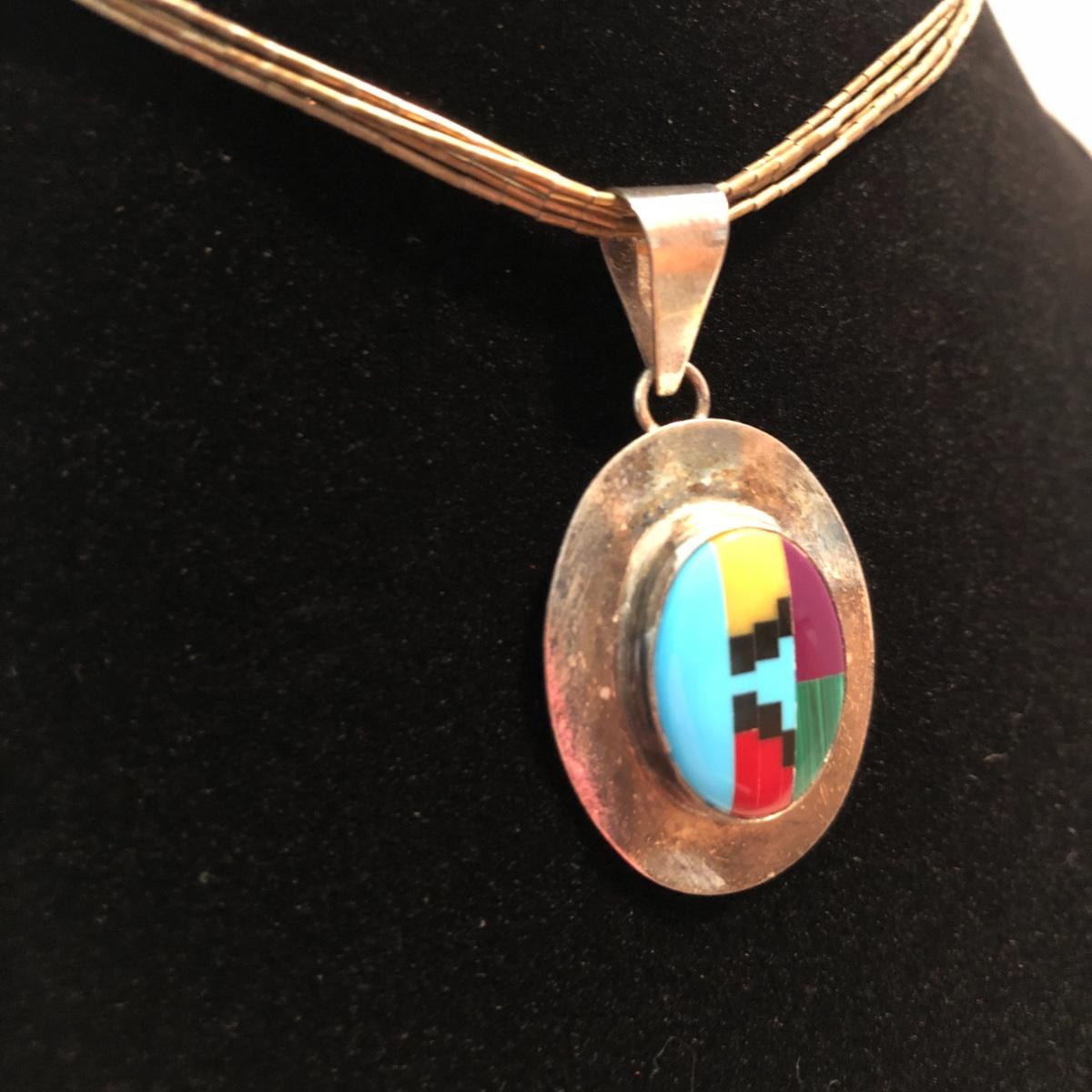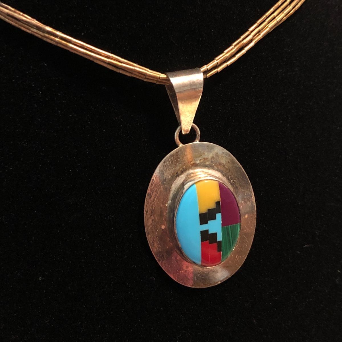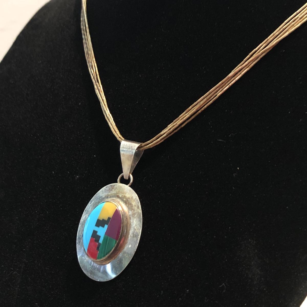 5 strand Liquid Silver necklace with most likely Native American sterling silver pendent.
