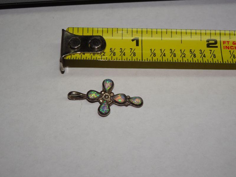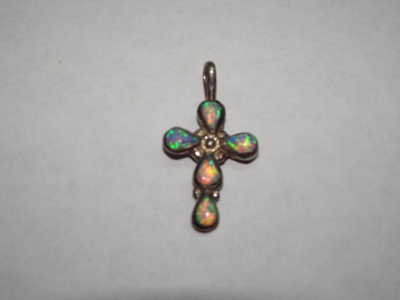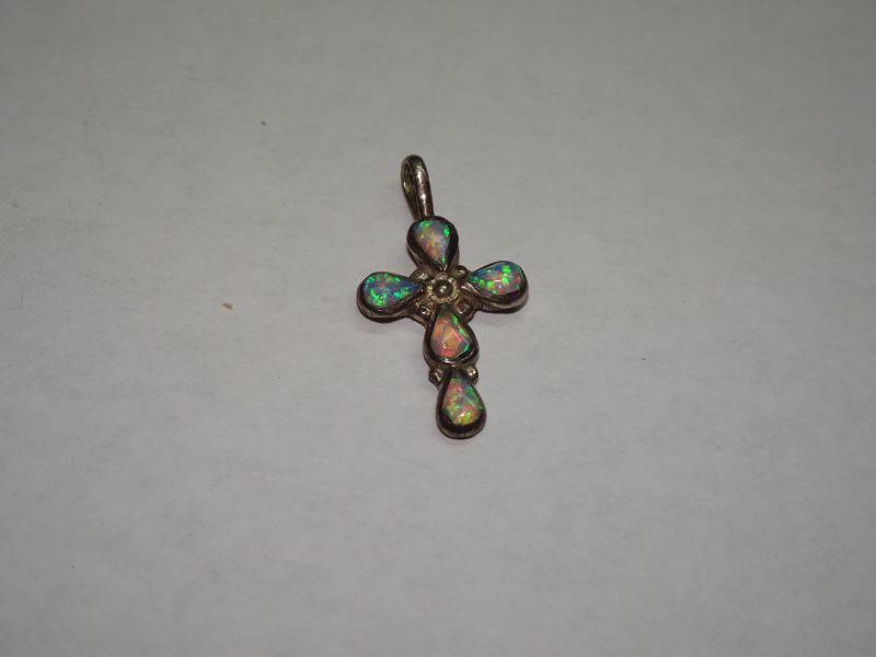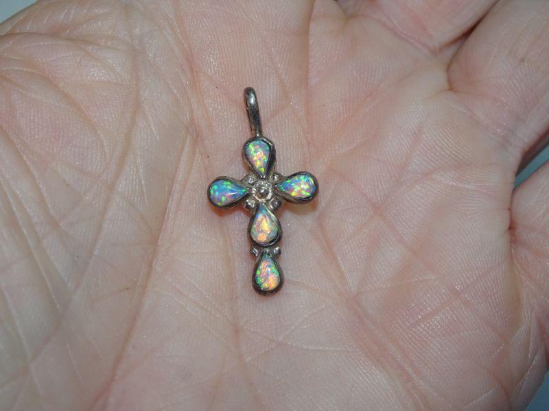 Vintage Sterling Silver Opal Cross, Child's Cross, Religious Icon