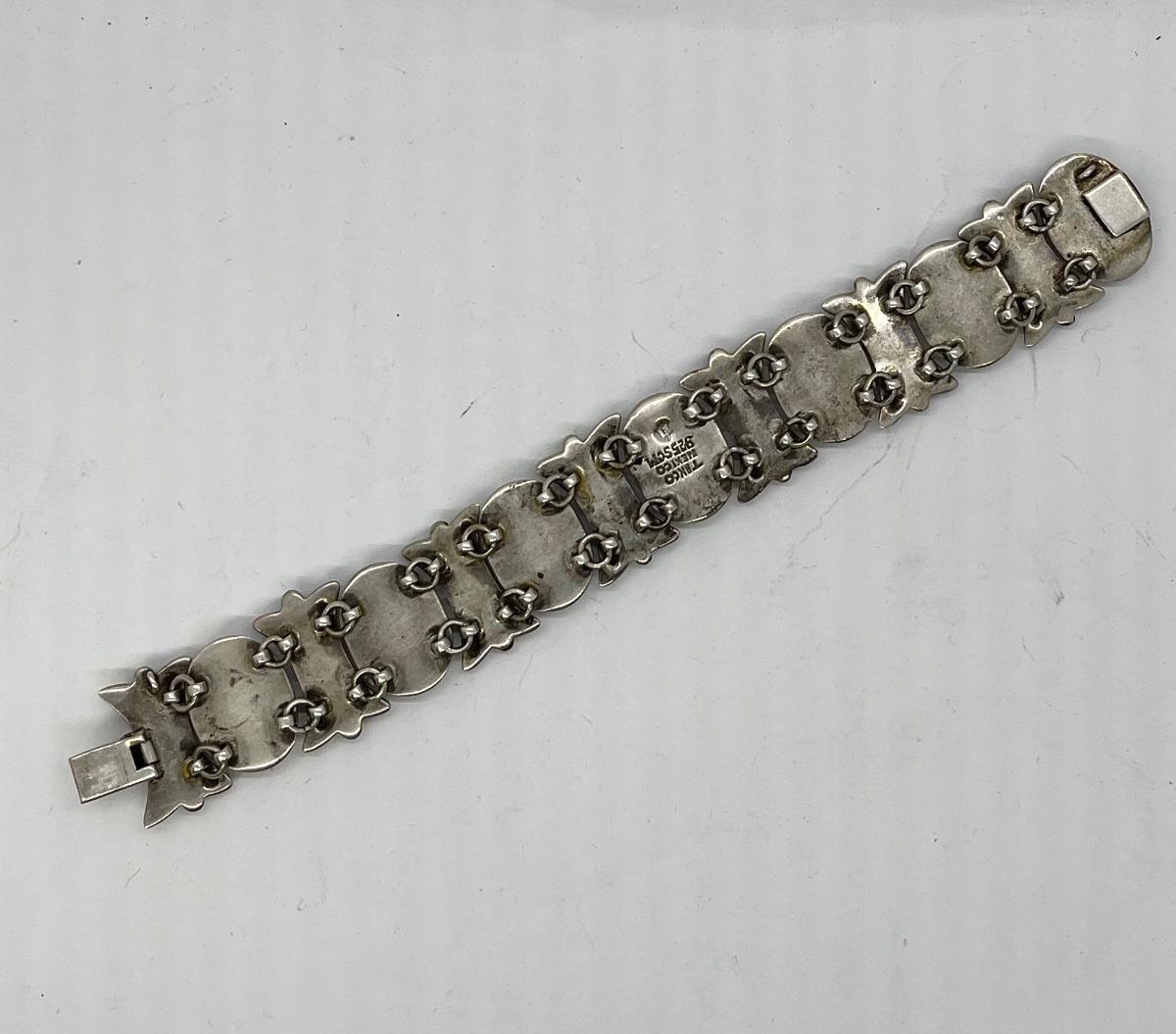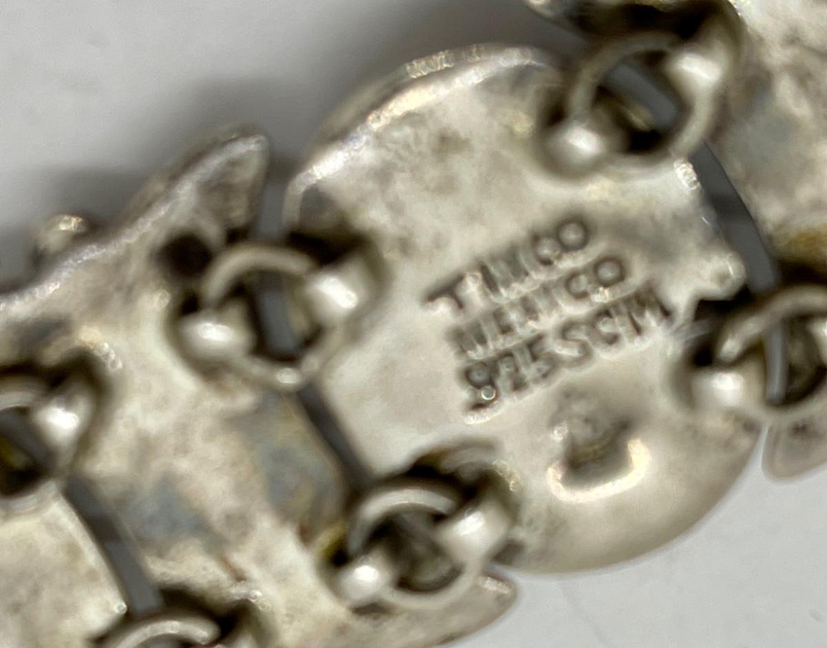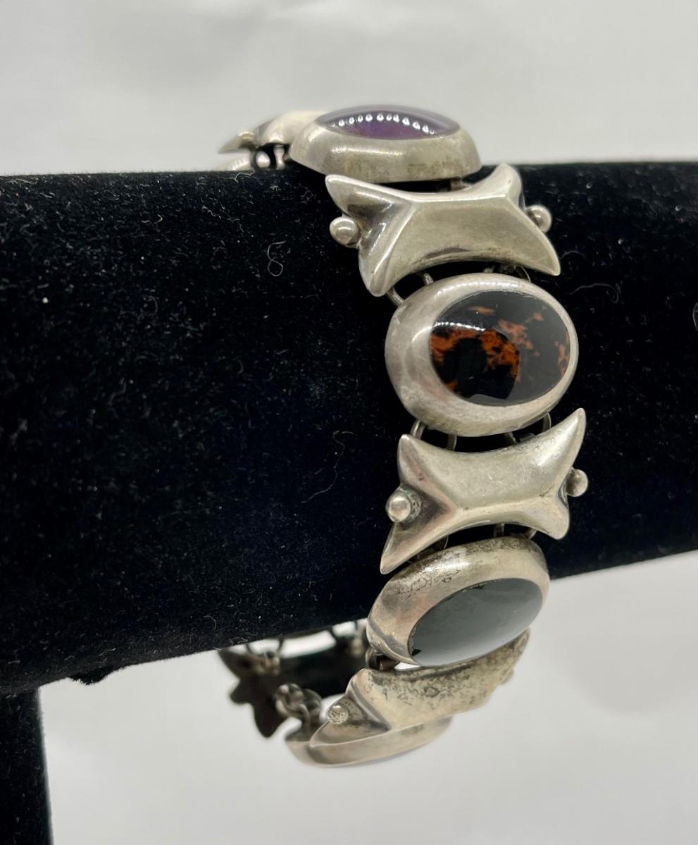 Vintage Sterling Silver Polished Stone Chakra Chunky Link Bracelet Taxco Mexico 925. In good condition. Center link is stamped. Latches well. About 7" length.