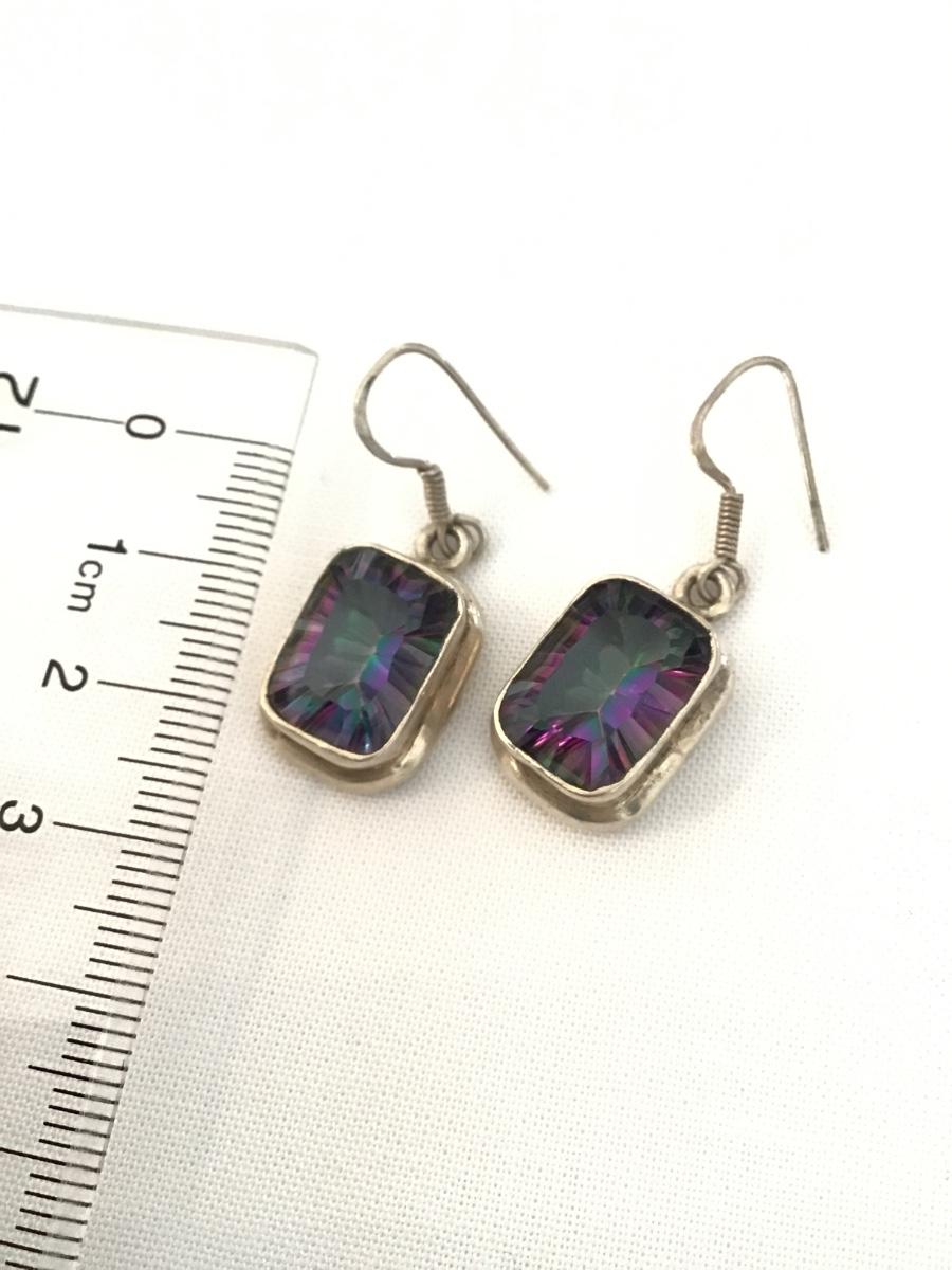 Vintage, sterling, silver squares, mystic topaz, crystal earrings