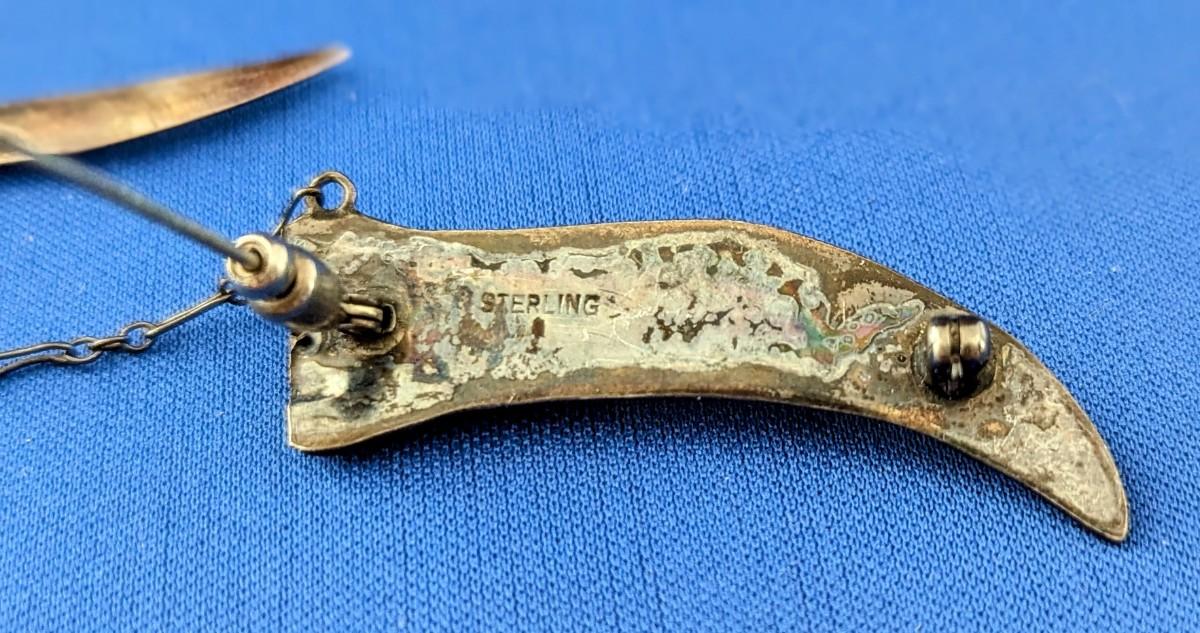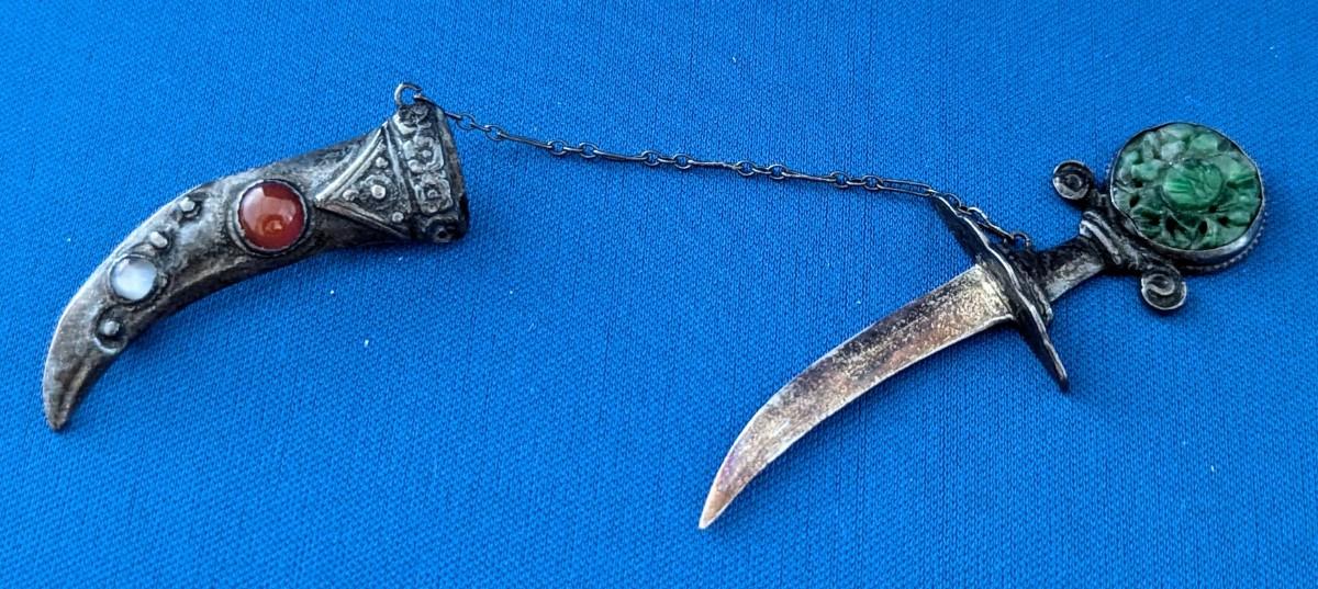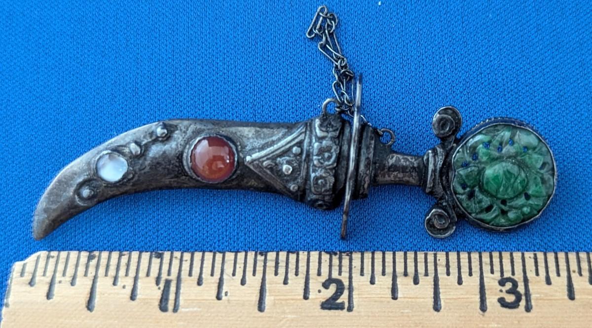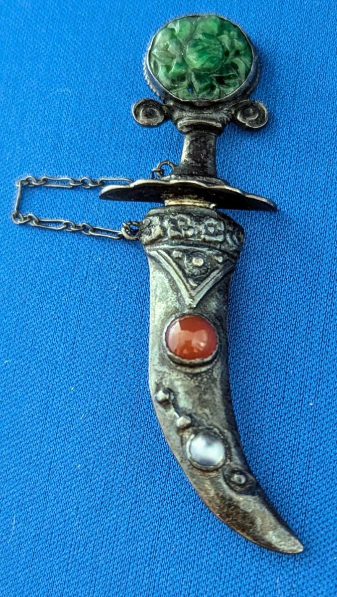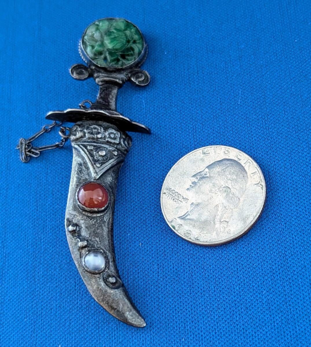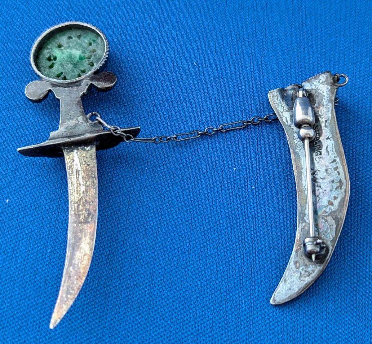 Vintage Sterling Silver Sword in Sheath pin Jade Carnelian Moonstone