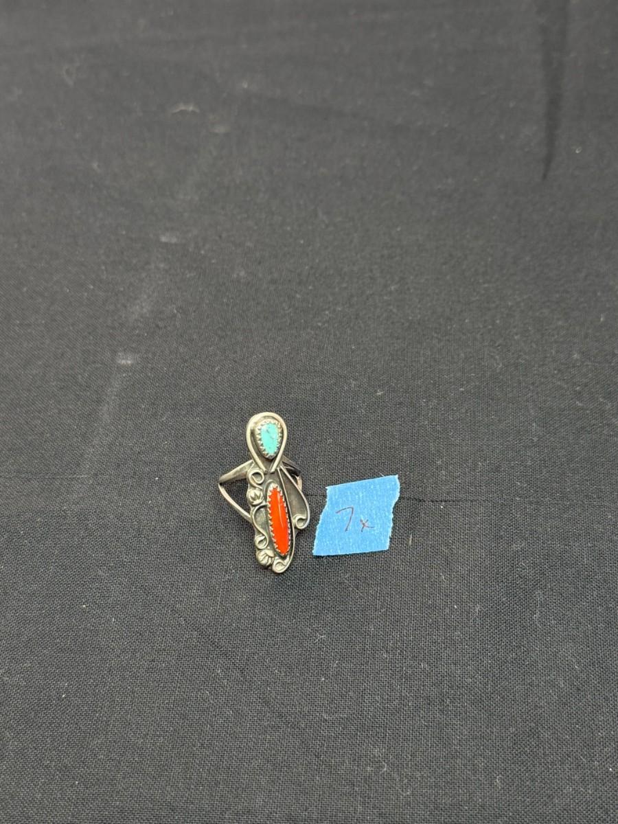 Vintage Sterling Silver Turquoise and Red Coral Ring