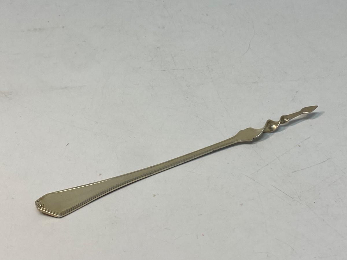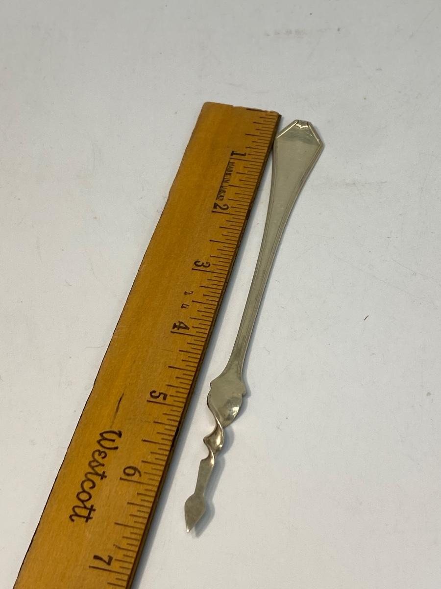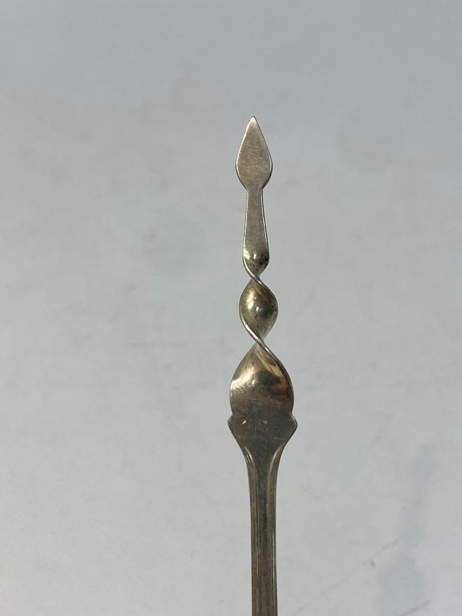 Vintage Sterling Silver Twisted Tip Olive Condiment Martini Drink Fork. Interesting utensil, single prong with a twist. Good condition. About 7' length.
