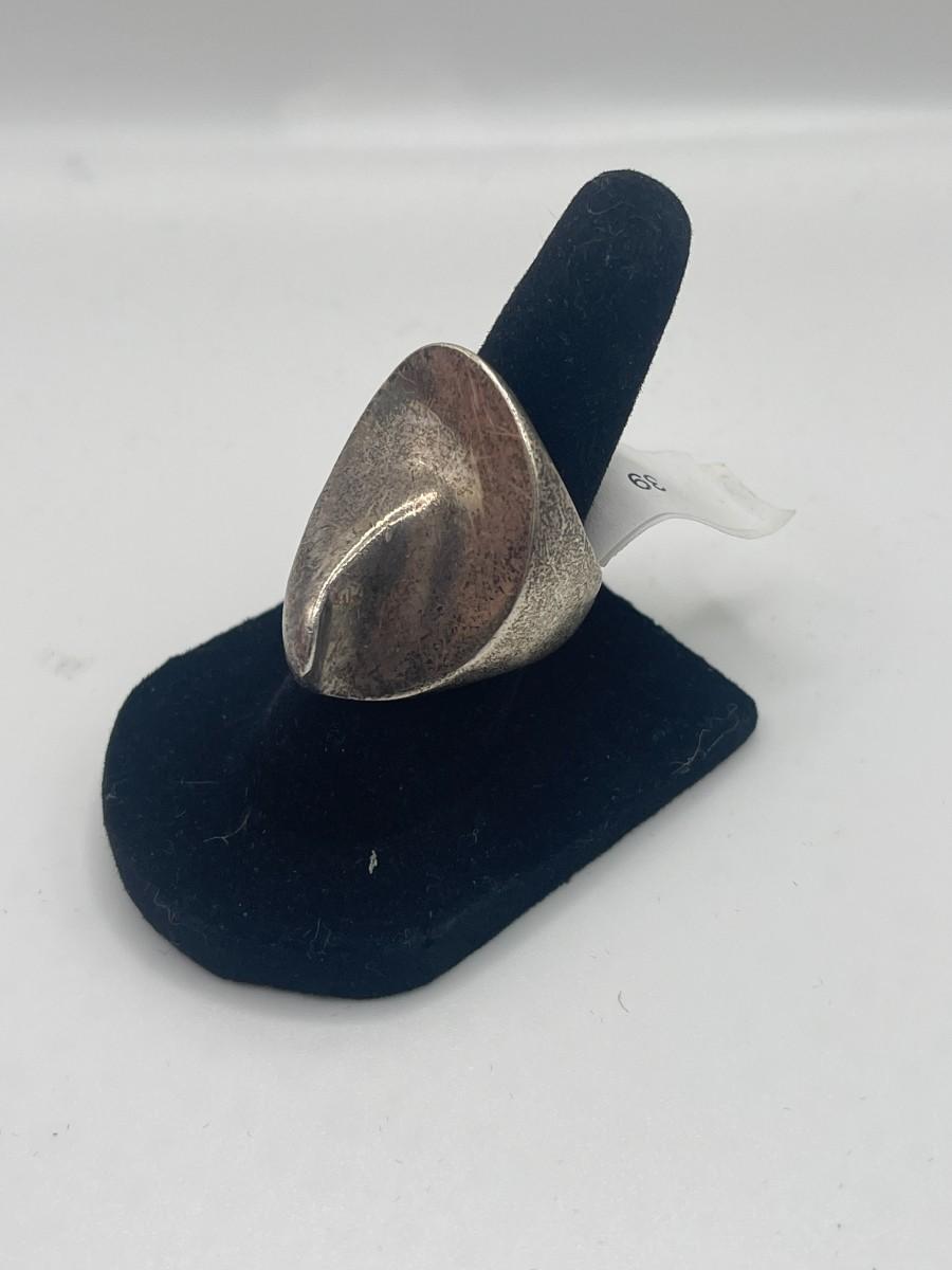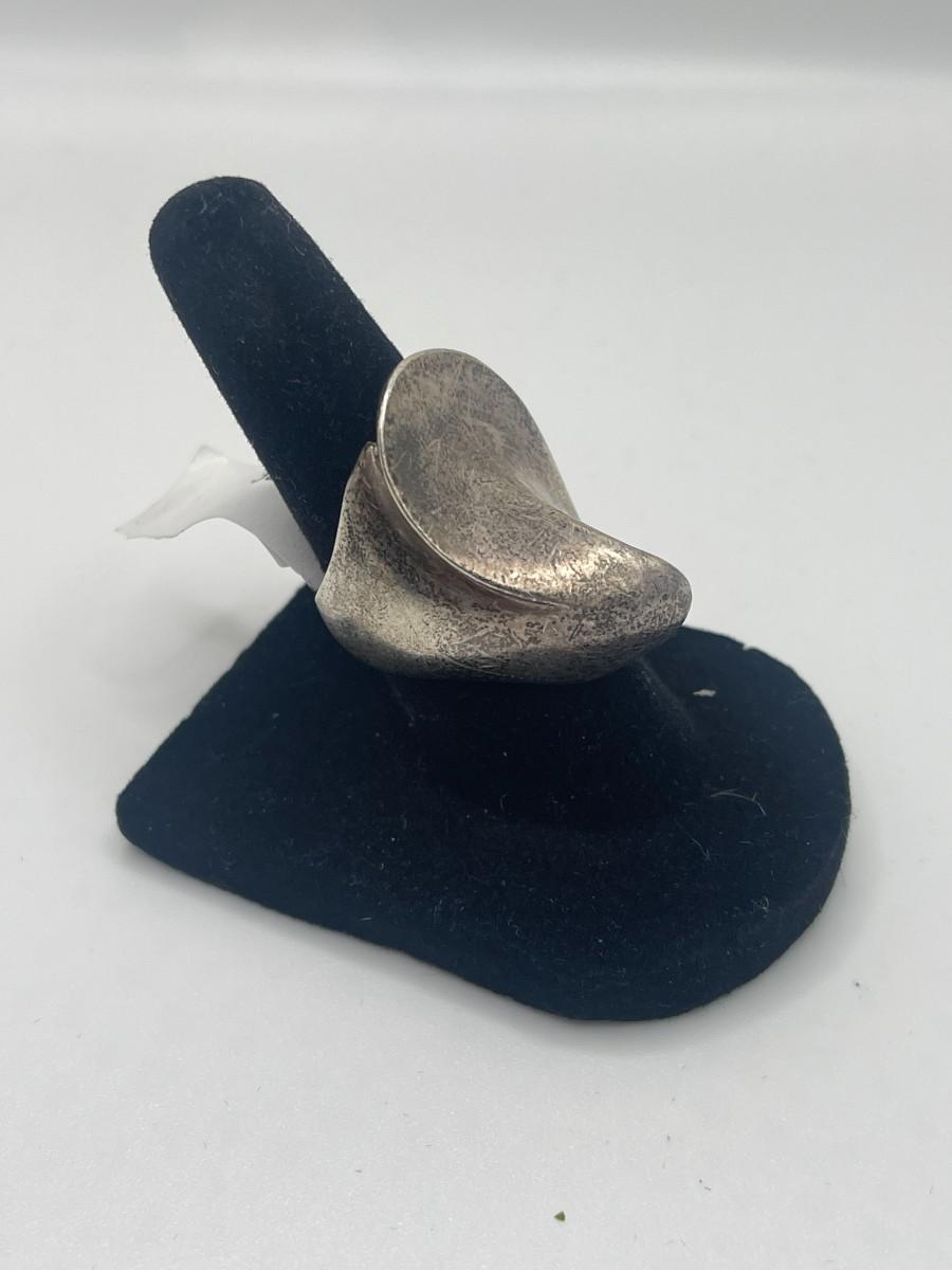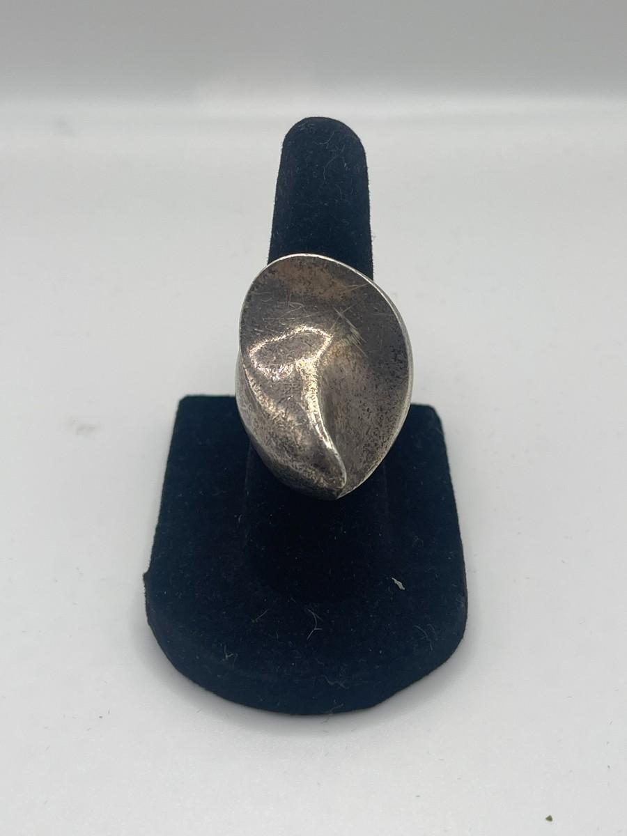 Vintage sterling statement ring with modern design“🦆almost looks like a fortune cookie. Stamped 925 on the inside. .515 troy ounces of silver. Size 7