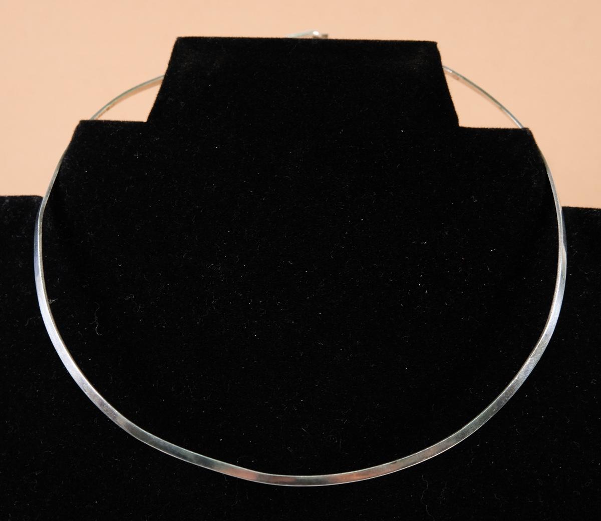 Sterling Taxco Mexico flat choker necklace. Stamped TR-189 MEXICO 925. Measures approx. 5" inner diameter with a 3.18 mm width. Weighs approx. 13 grams. Note: slightly misshapen.