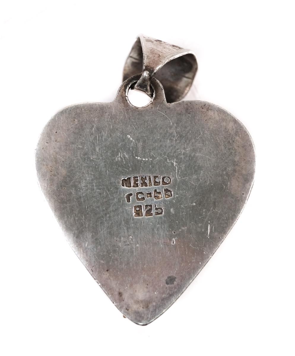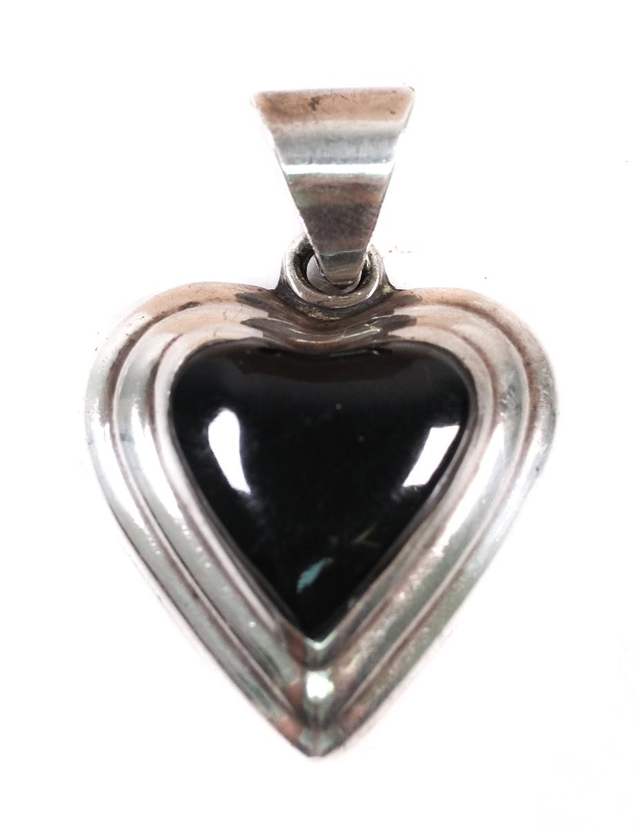 Vintage Sterling Taxco Mexico Onyx Heart Pendant