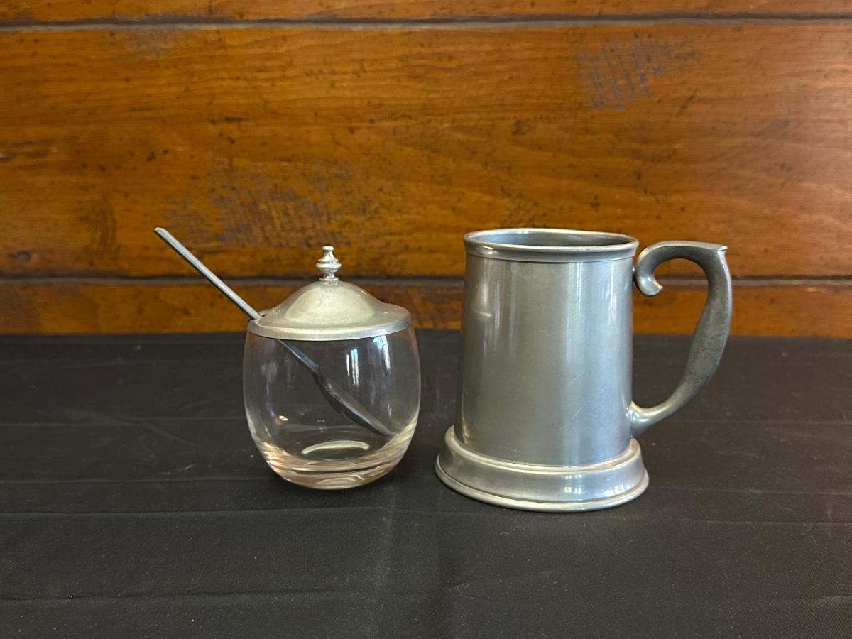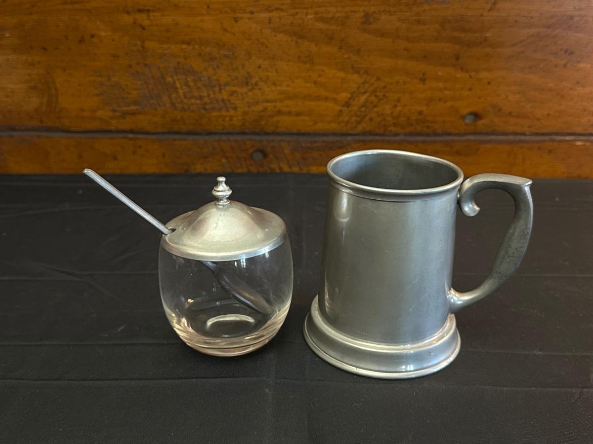 Vintage Stieff Pewter Mug/Beer Stien and Jam Glass Jar
