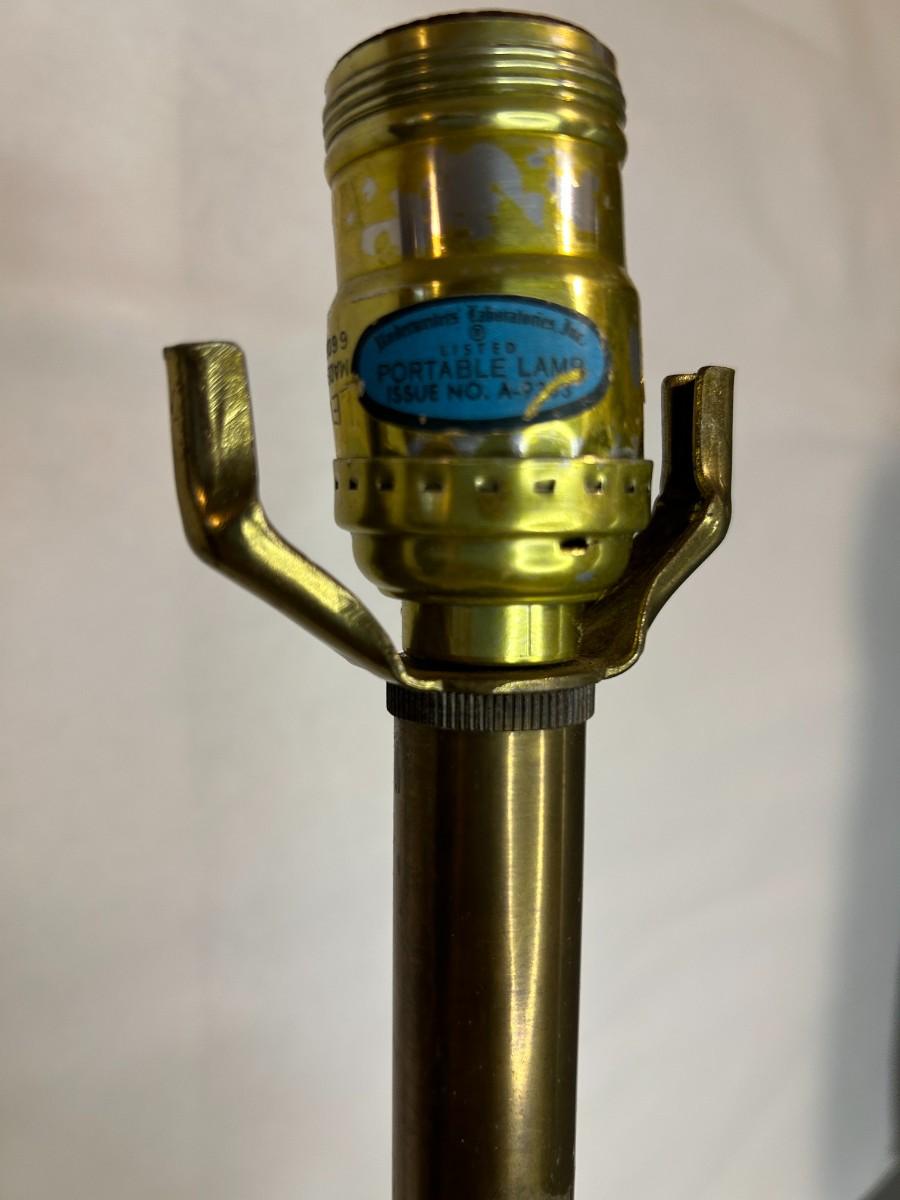 Disclosures: We tested the lamp, which works correctly and is in excellent structural condition. As with all vintage electrical items, we recommend professional evaluation. The lamp will benefit from detailed polishing as price tag remnants and dullness are present. (See pictures for details.)