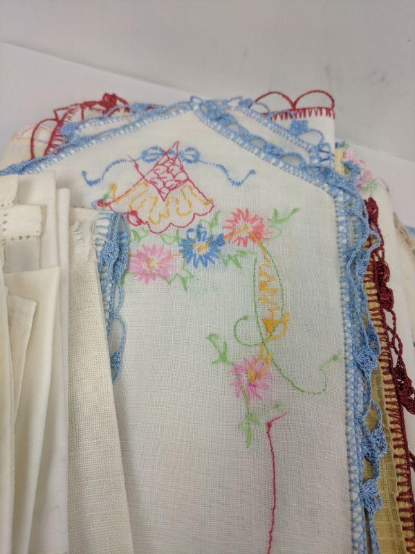 Vintage Stitched Flowered Handkerchiefs/Napkins