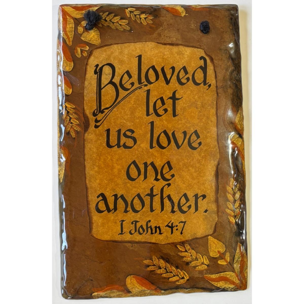 Vintage Stone Plaque Beloved Let Us Love One Another John 4:7 Christian Brown