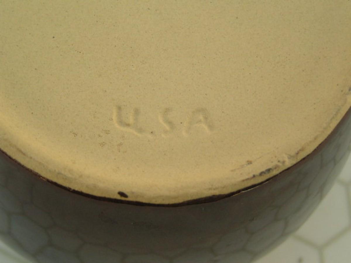 Vintage Stone Ware crockery bean pot w/brown glaze. Marked U S A