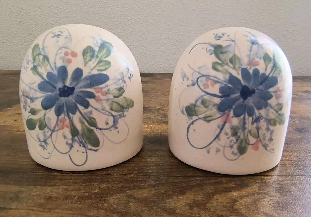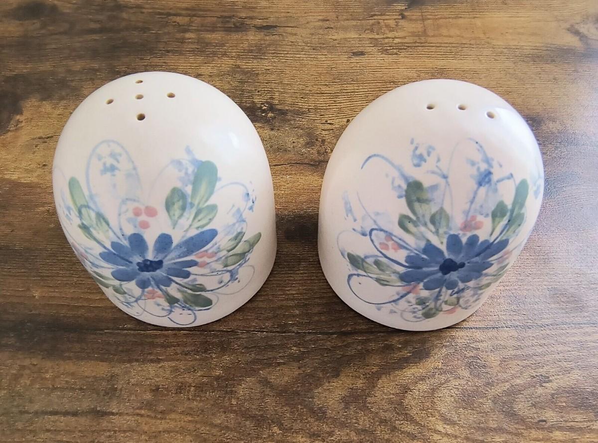 Vintage MCM large stoneware blue flower salt pepper shakers rob roy, set of 2