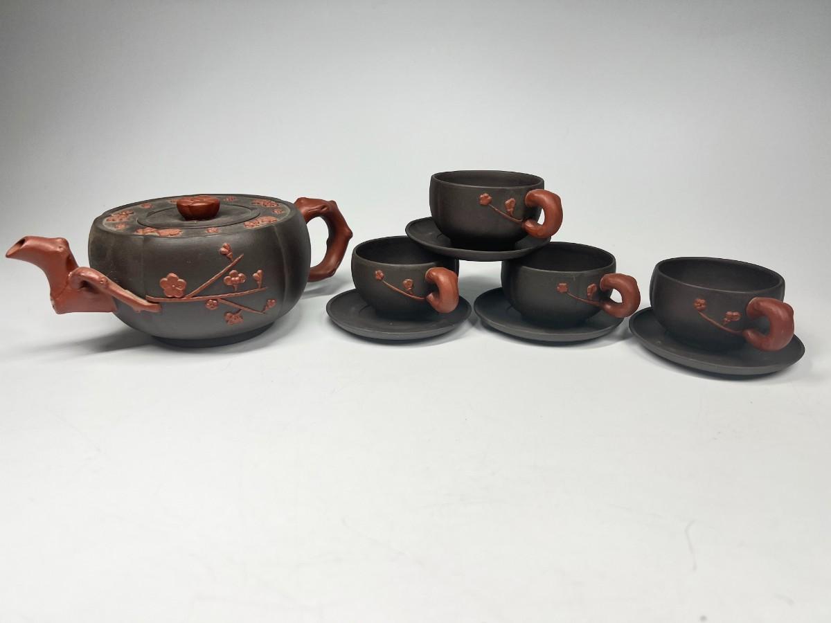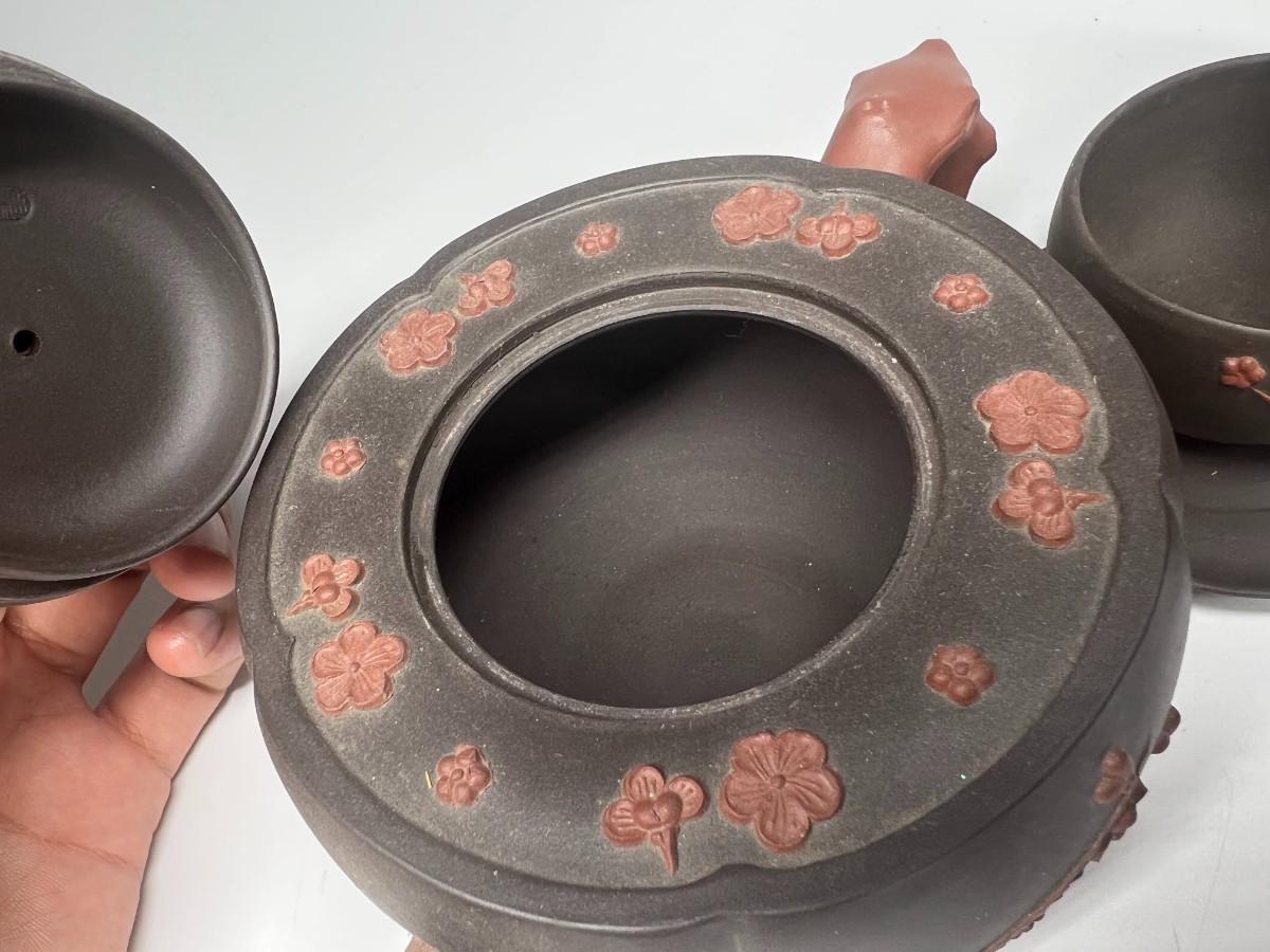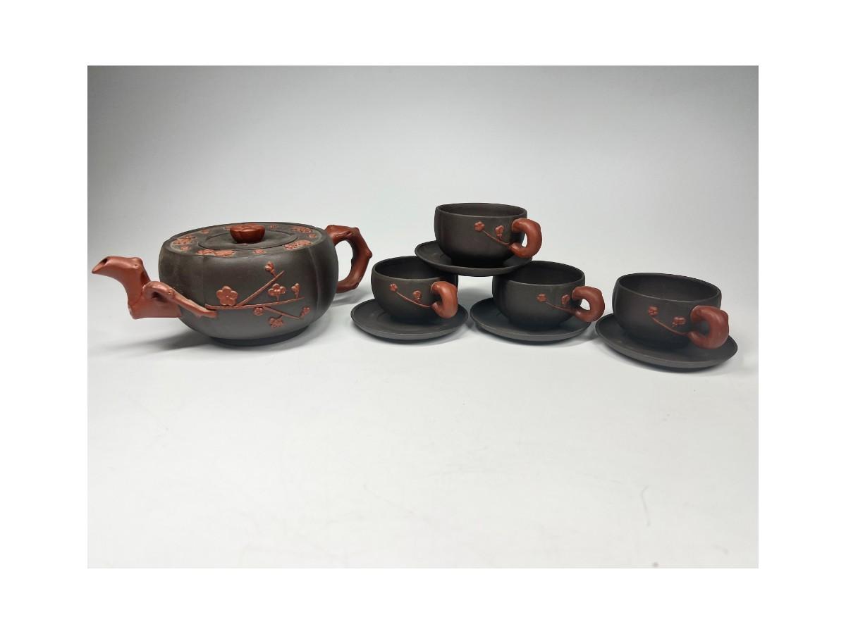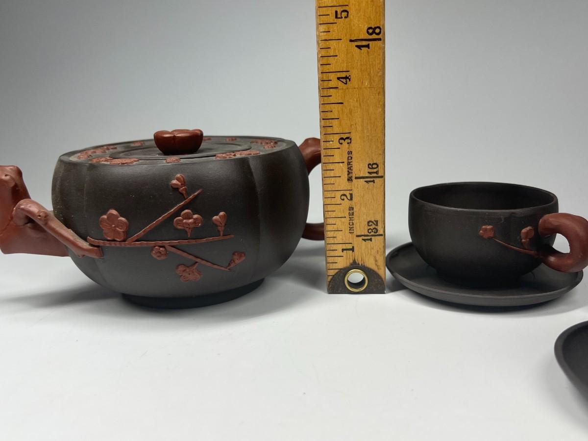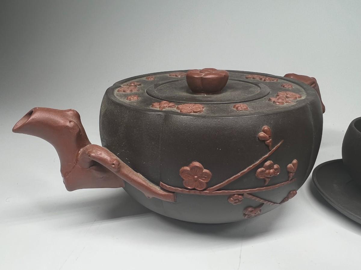 Vintage Stoneware Teapot & Cup Set Cherry Blossom Made in China. Stamped on the bottom. In good condition, display nicely.