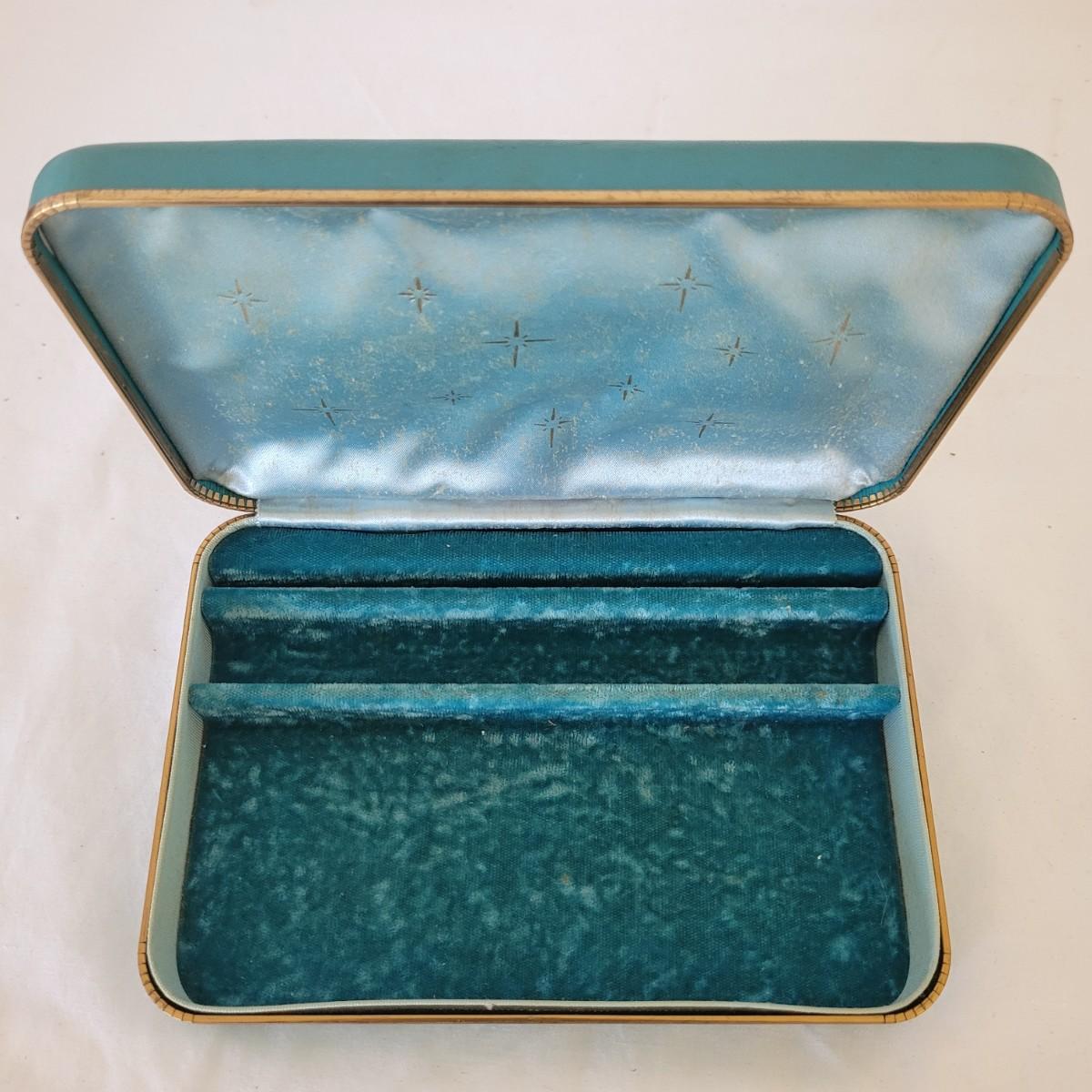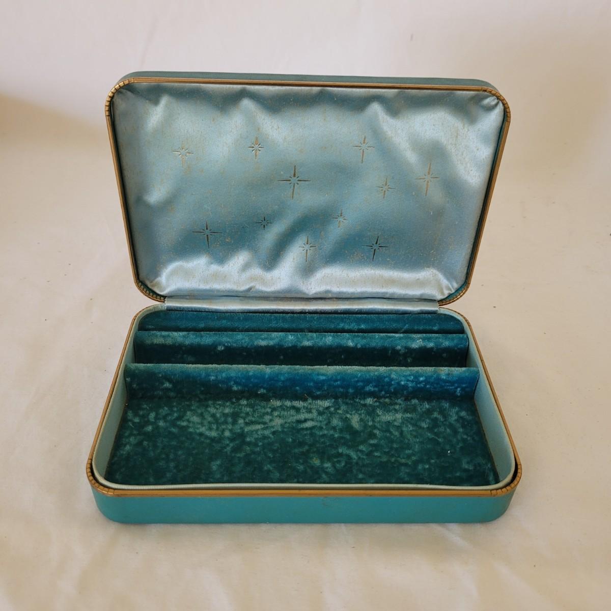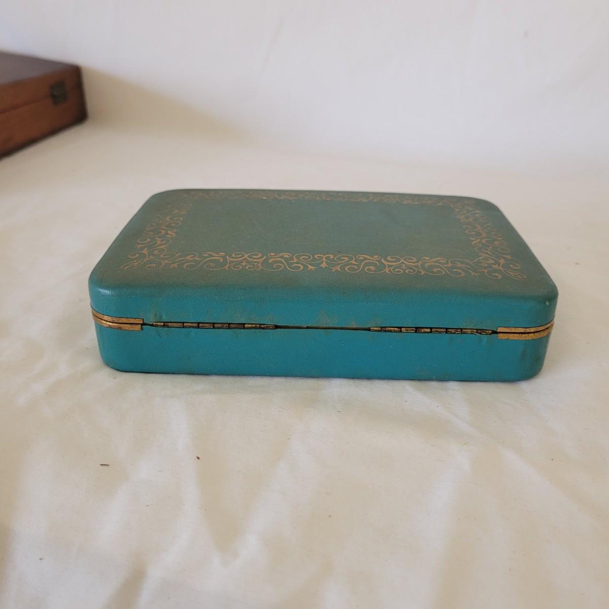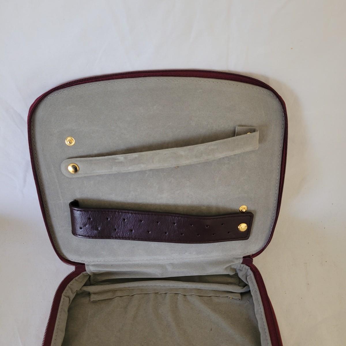 This lot of vintage storage cases includes a wooden serveware case with dovetail joints, a small velvet lined jewelry case and a pouch with snapping straps. Wooden case measures approximately 12” x 2” x 11”H. Shipping available.
