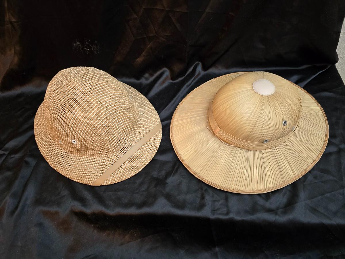 Vintage Straw 1950's Pith Helmet Safari Hat And a Vintage Safari Hat Brown Explorer By Sun Fari
