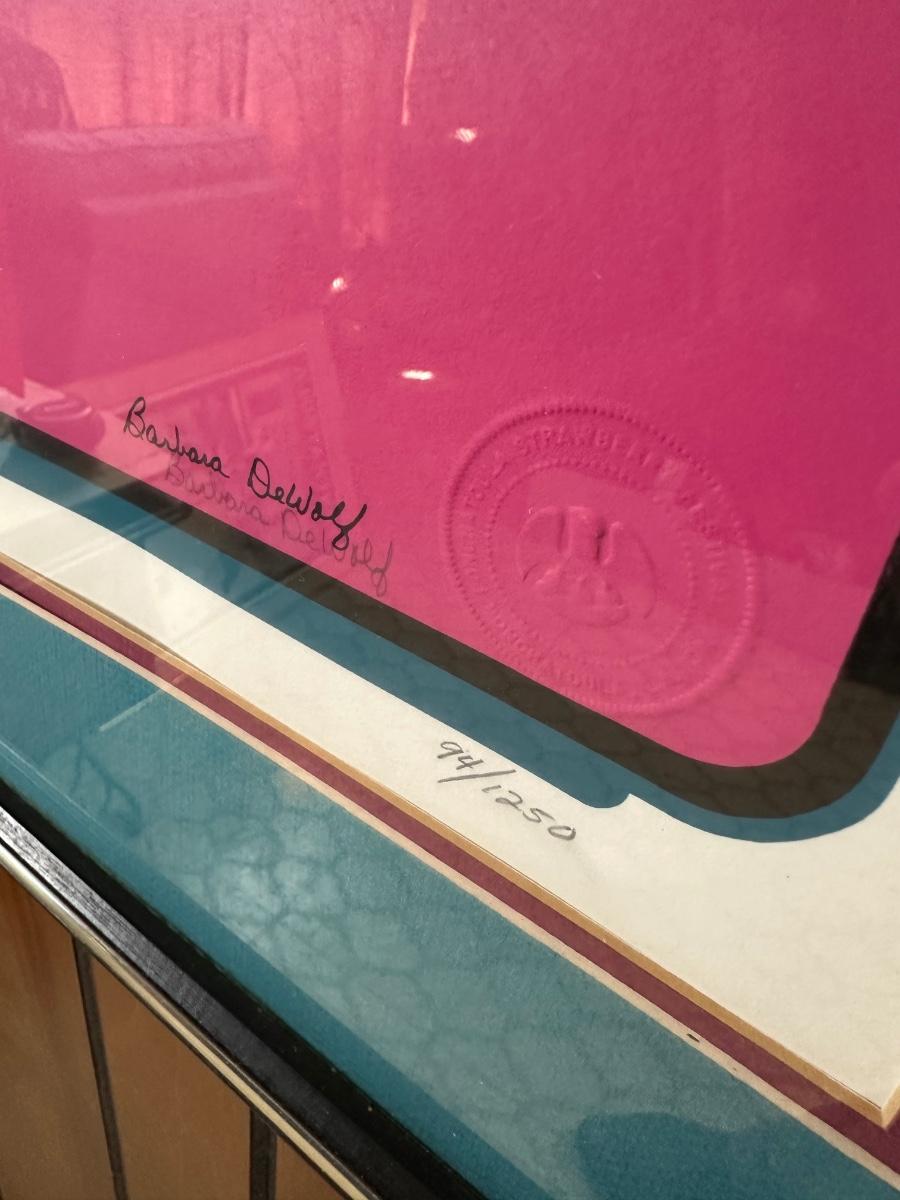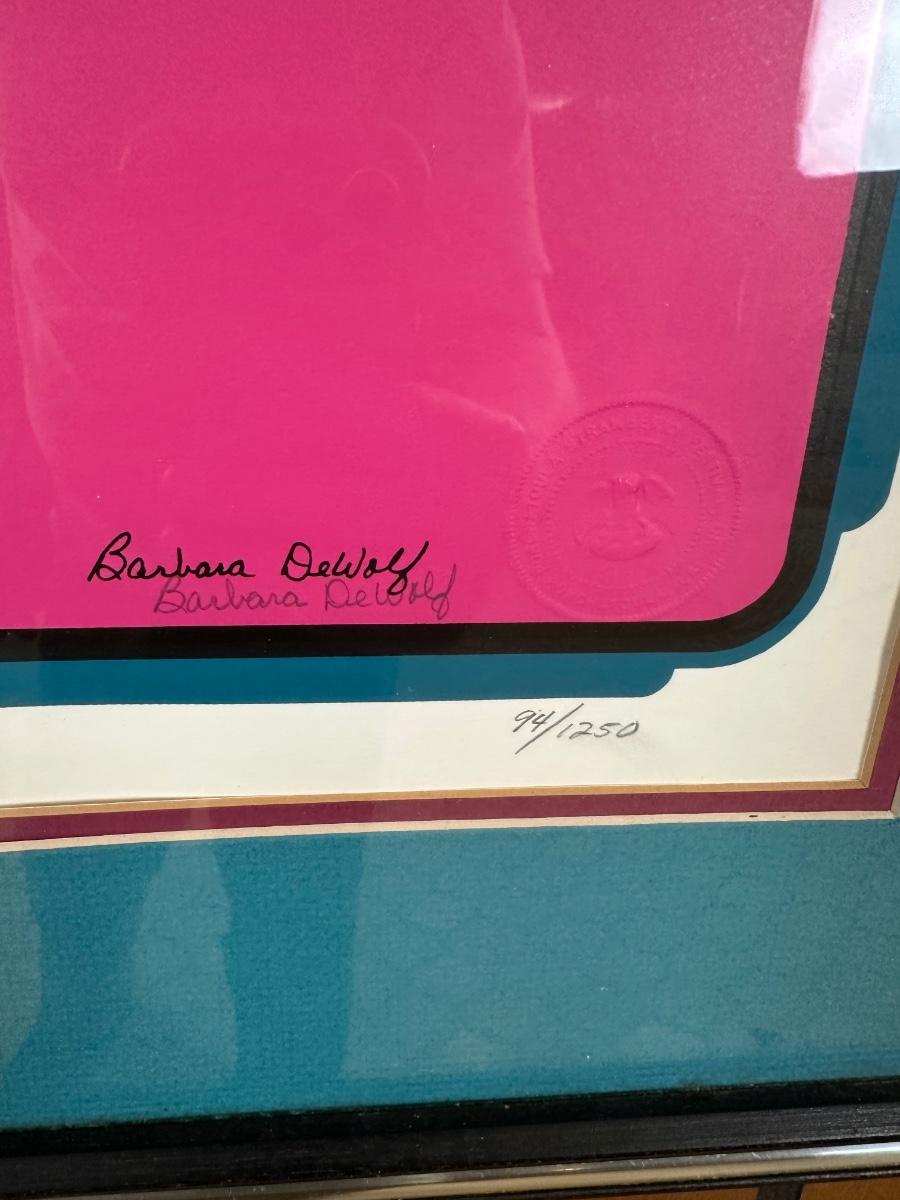 Hand-signed by the artist Barbara DeWolff and numbered 94/250. Professionally framed and matted.