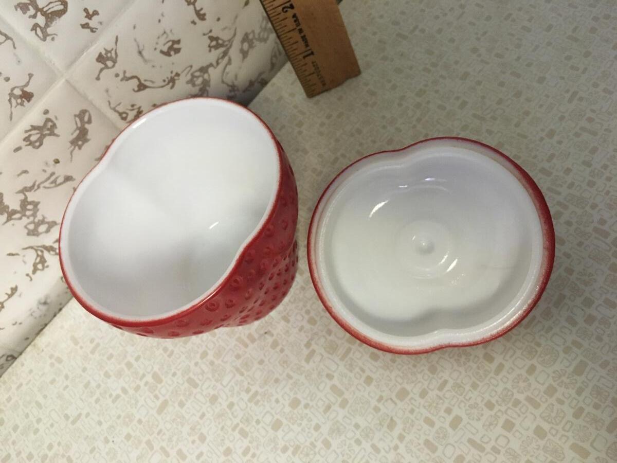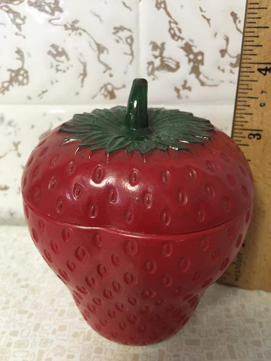 It's a strawberry, it's a jar. Yes it's both. LIft the leafy lid and you have room for some of you most treasured and tiny mementos.