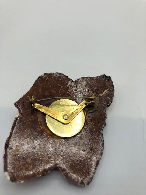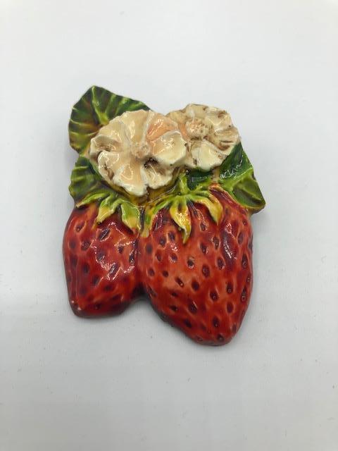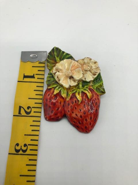 Vintage Strawberries Pin. Made in Germany. Feels like a painted plastic, very light. The end of the leaf on the right has been broken off.