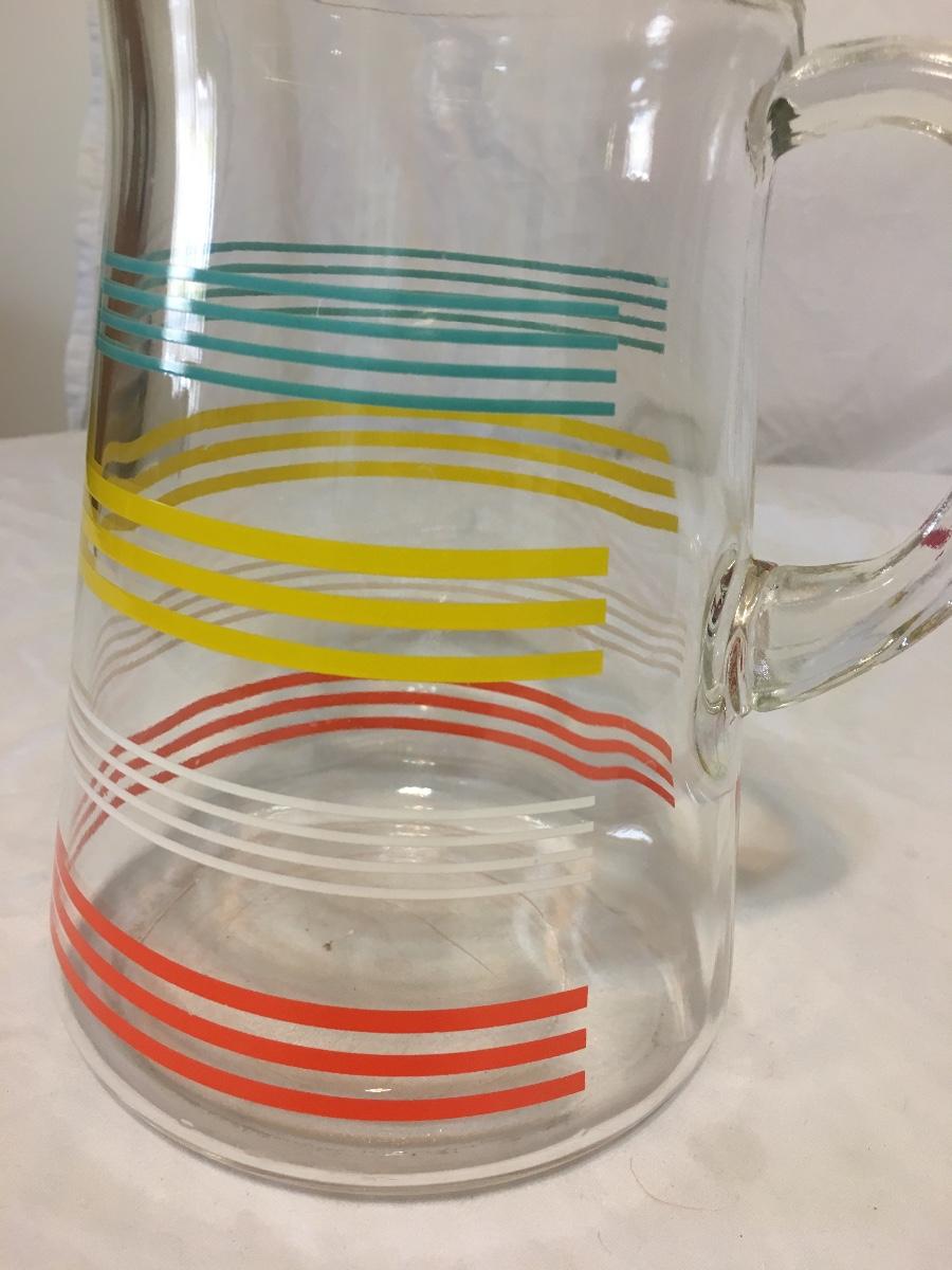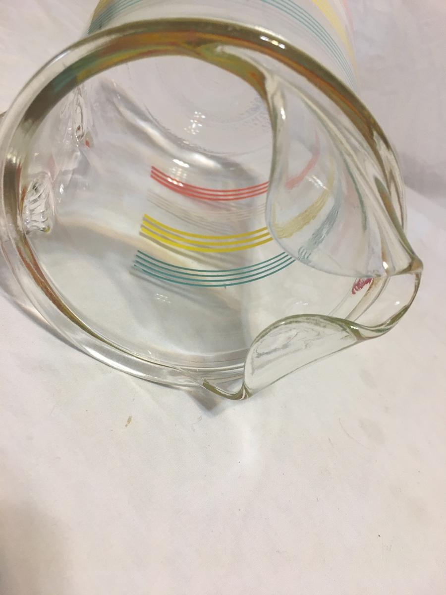 Vintage  StripedClear Glass Pitcher With Ice Lip 8 Cups