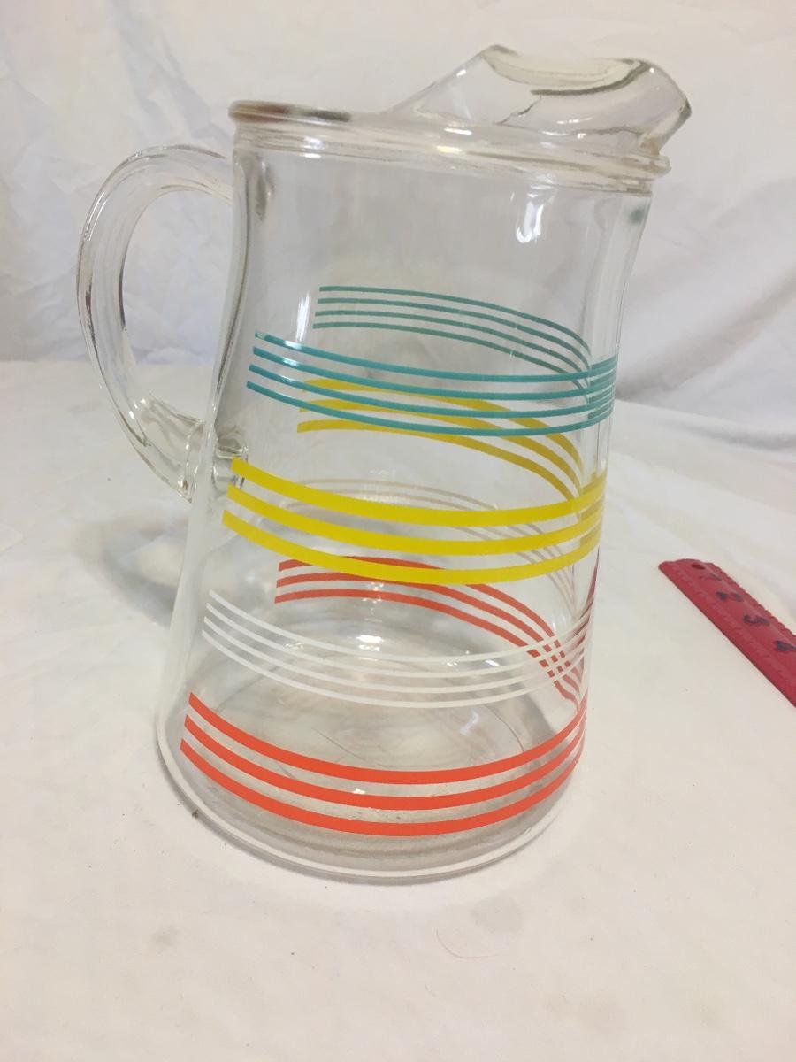 Vintage StripedClear Glass Pitcher With Ice Lip 8 Cups