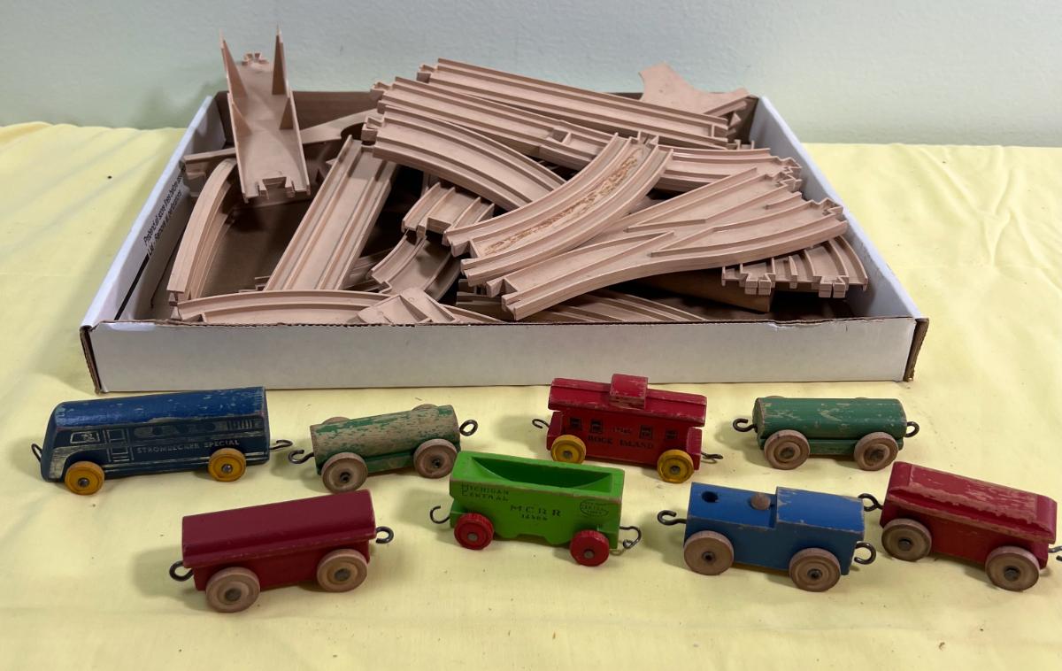 Vintage STROMBECKER Wood Train Set with Plastic Track