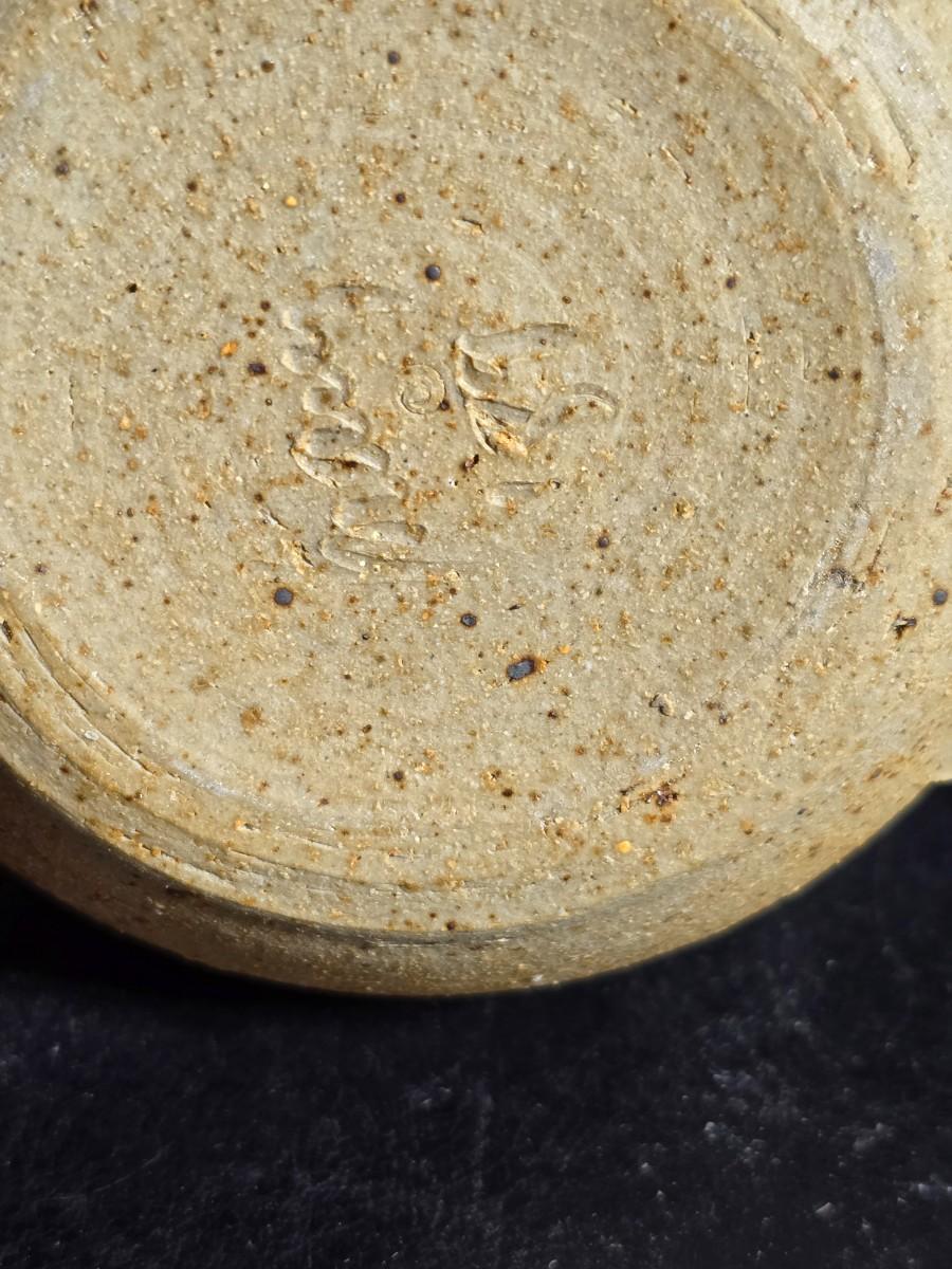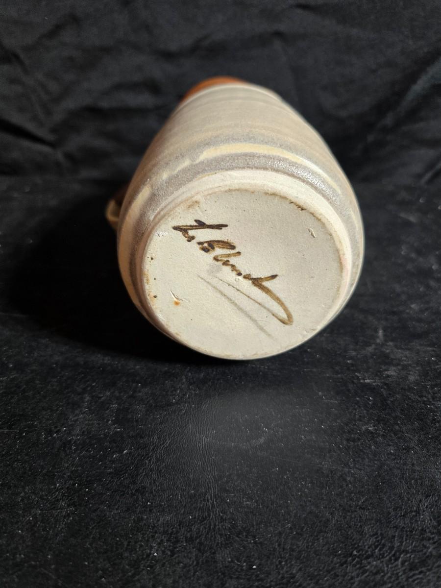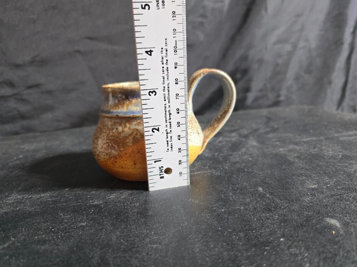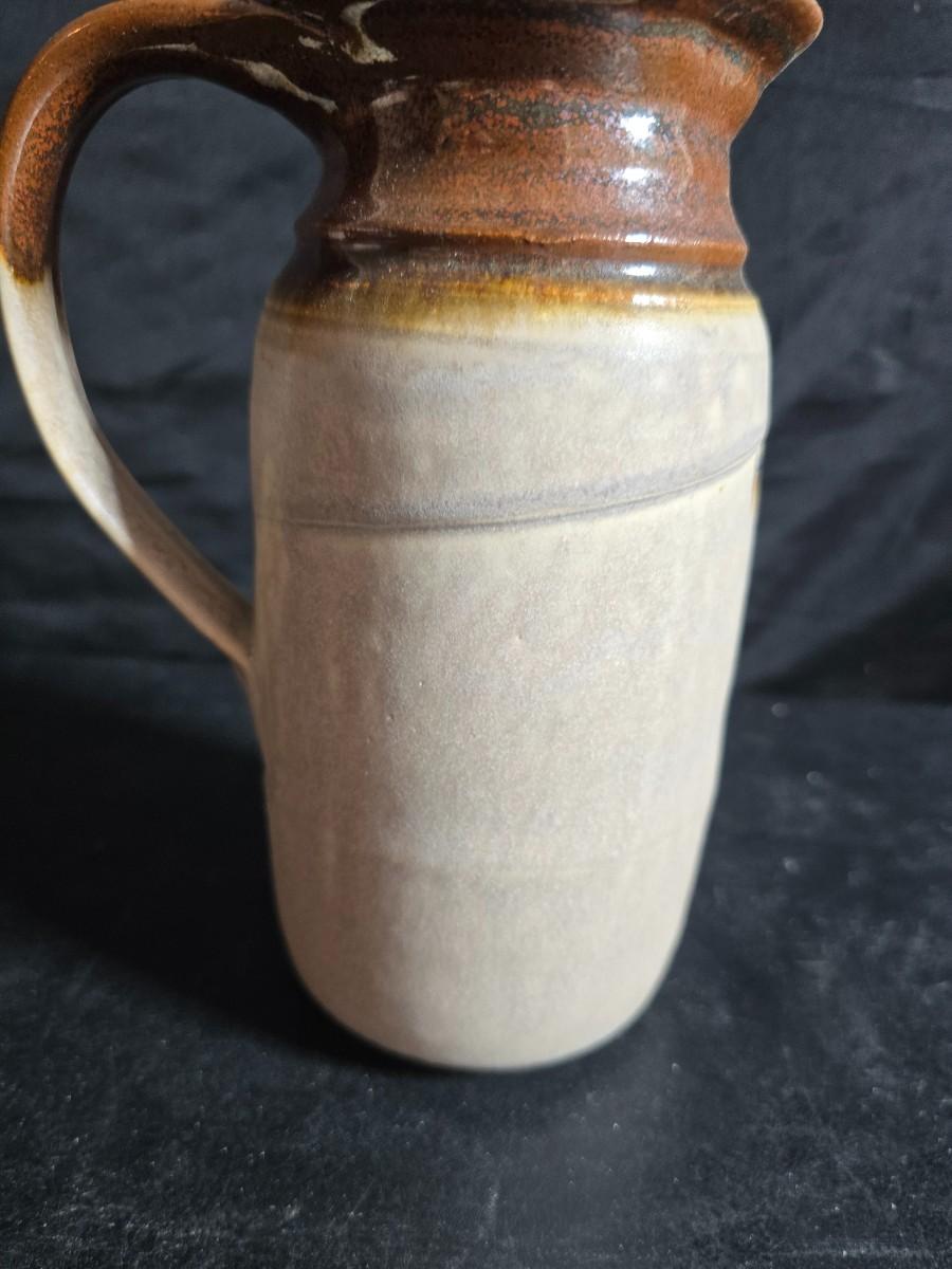 vintage studio pottery pitcher with two mugs - each signed by artist
