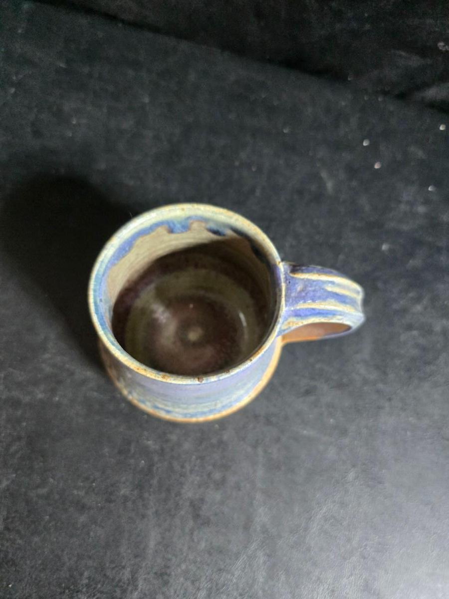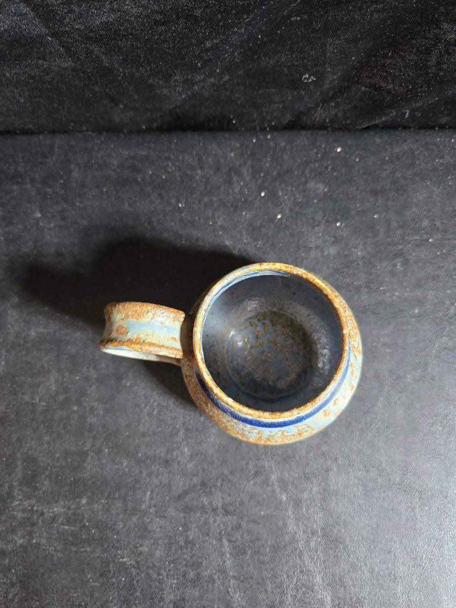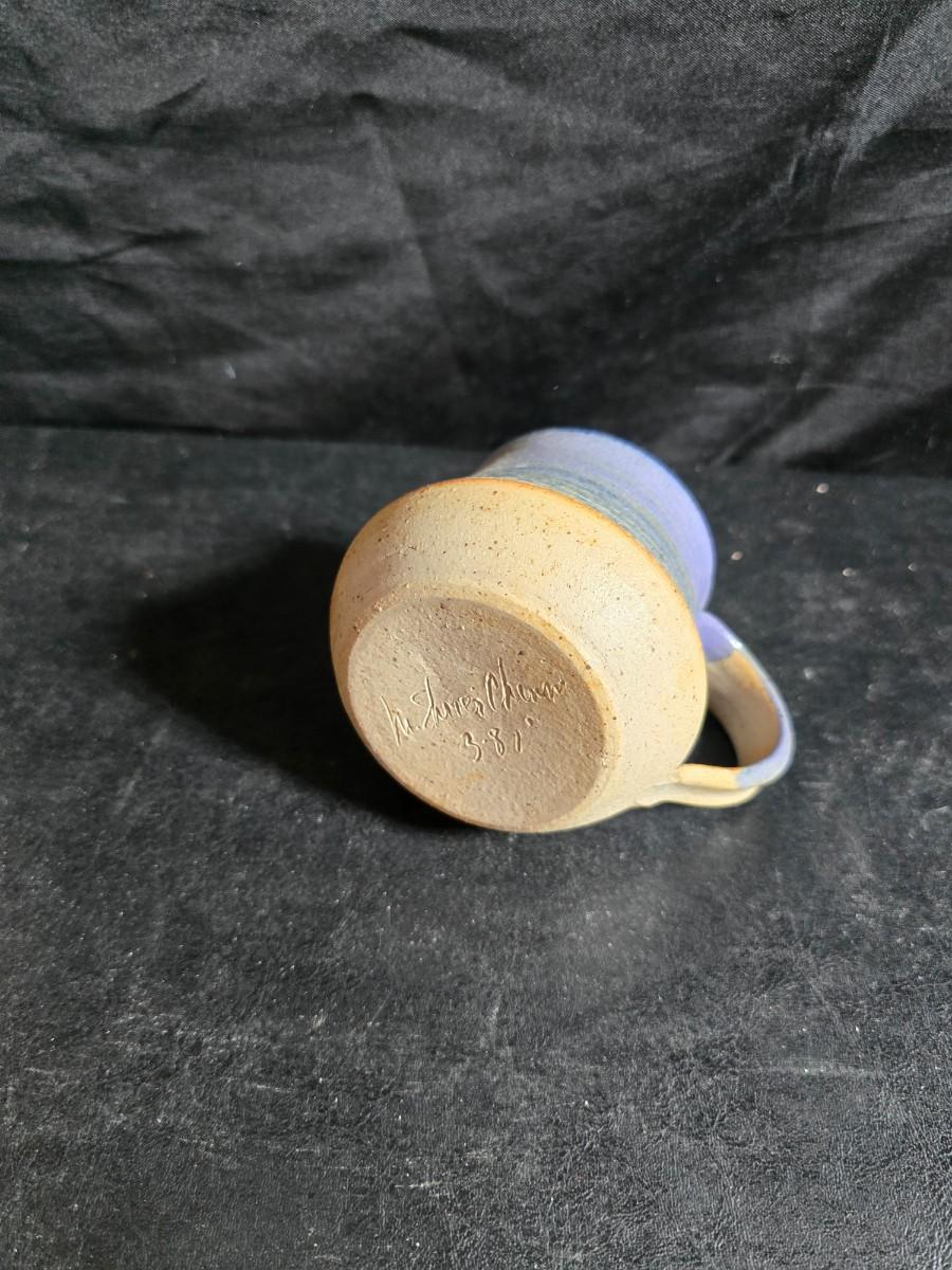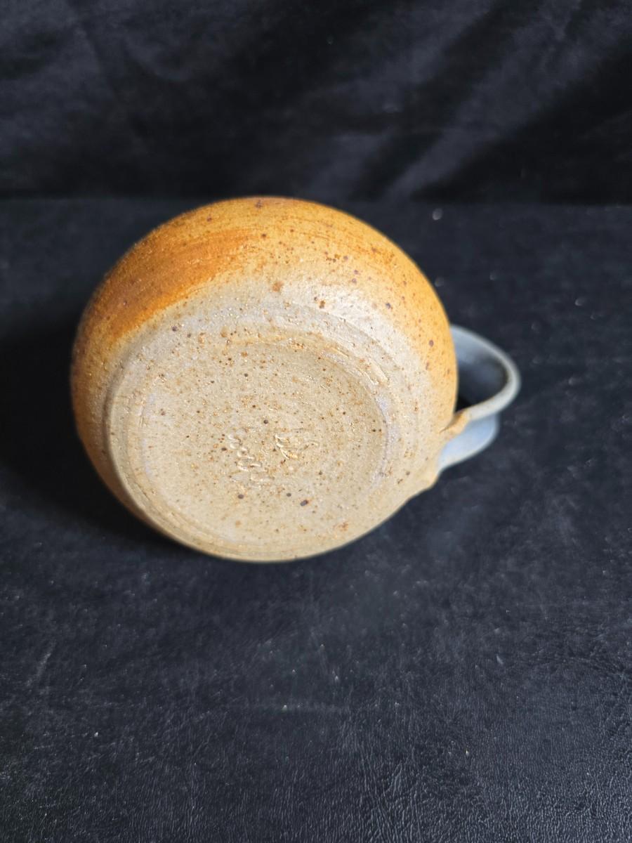 vintage studio pottery pitcher with two mugs - each signed by artist