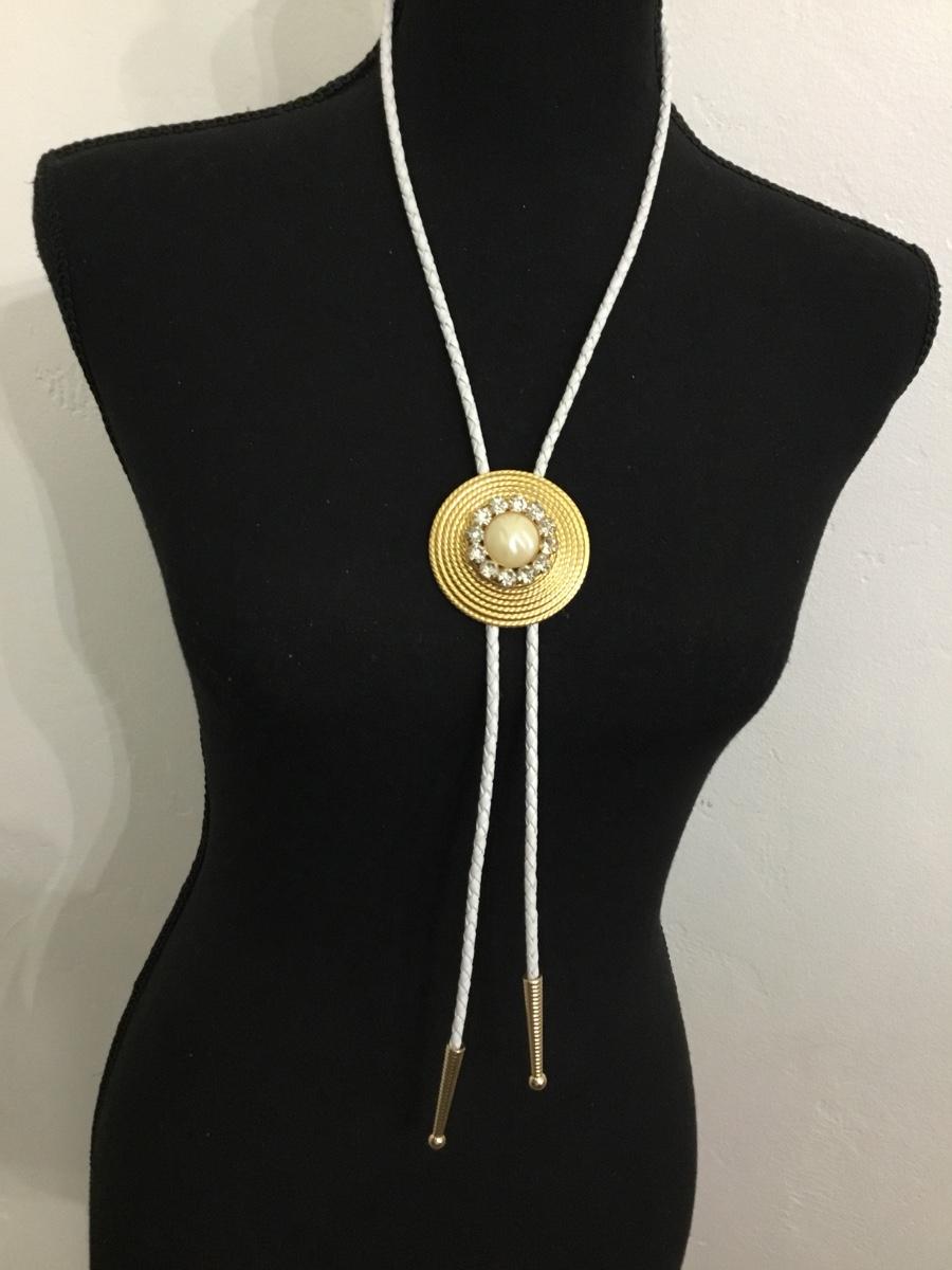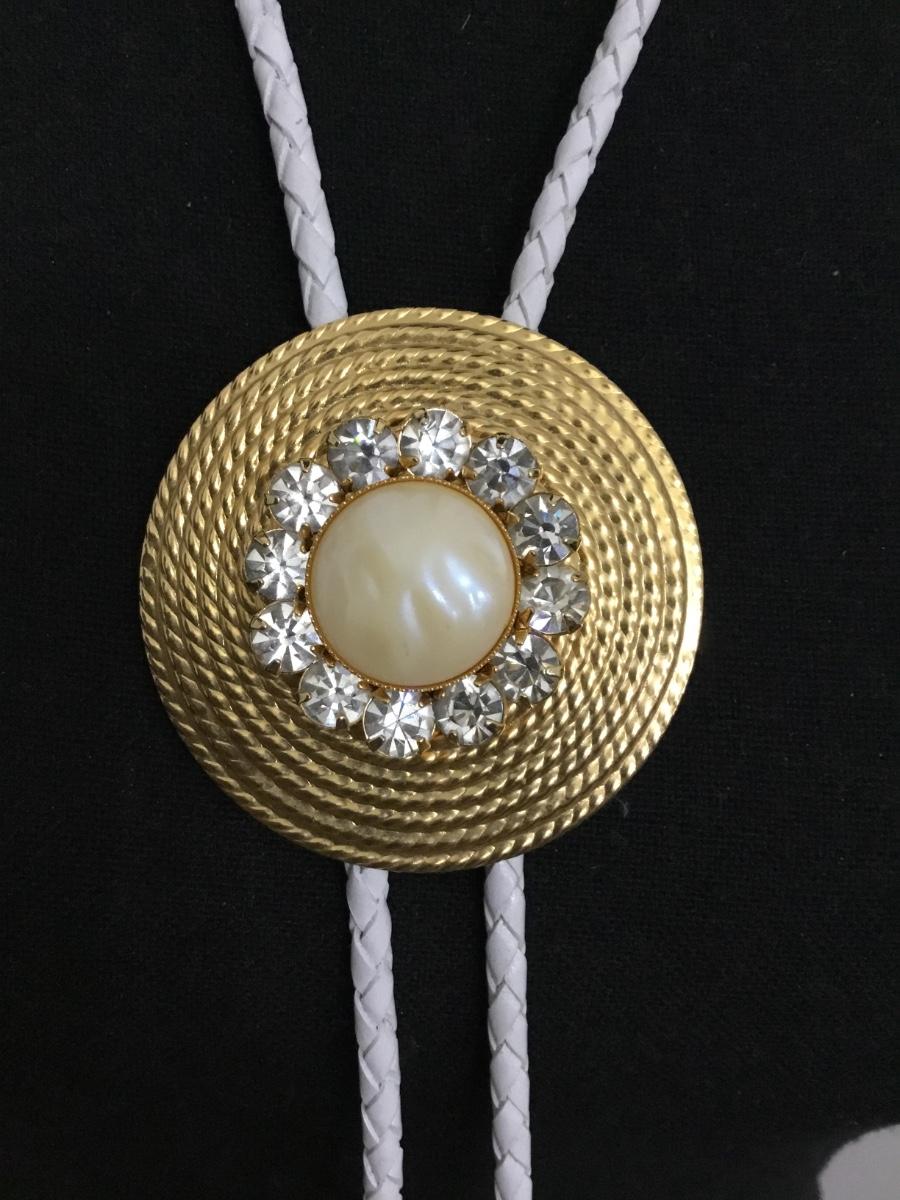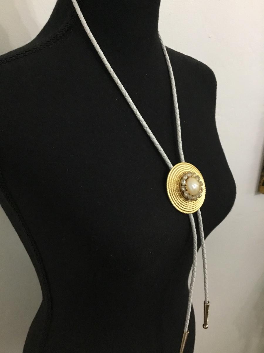 Vintage Stunning, real leather, gold tone, pendant, Bolo tie