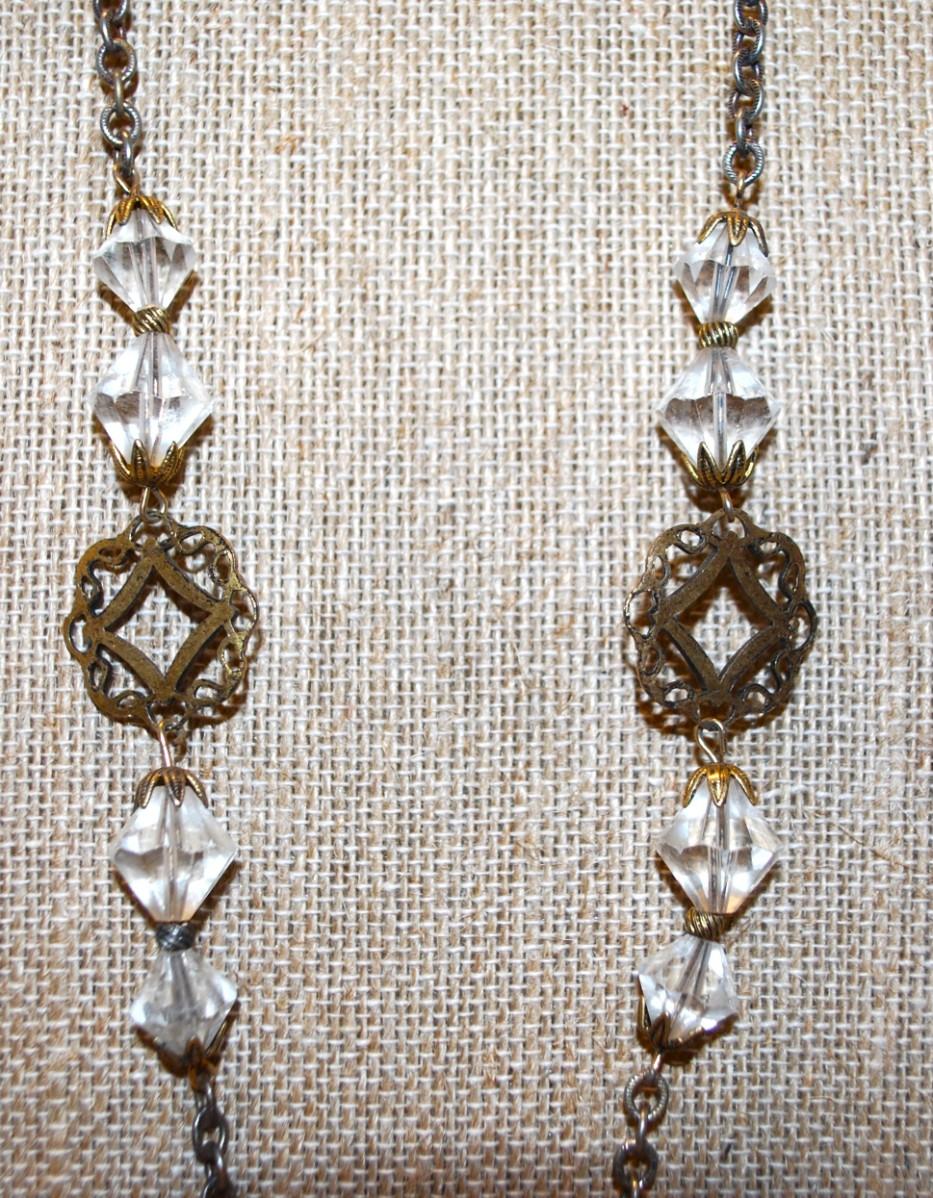 Vintage Style Acrylic Rhombus Beads on a Gold Tone Necklace Chain 28" L