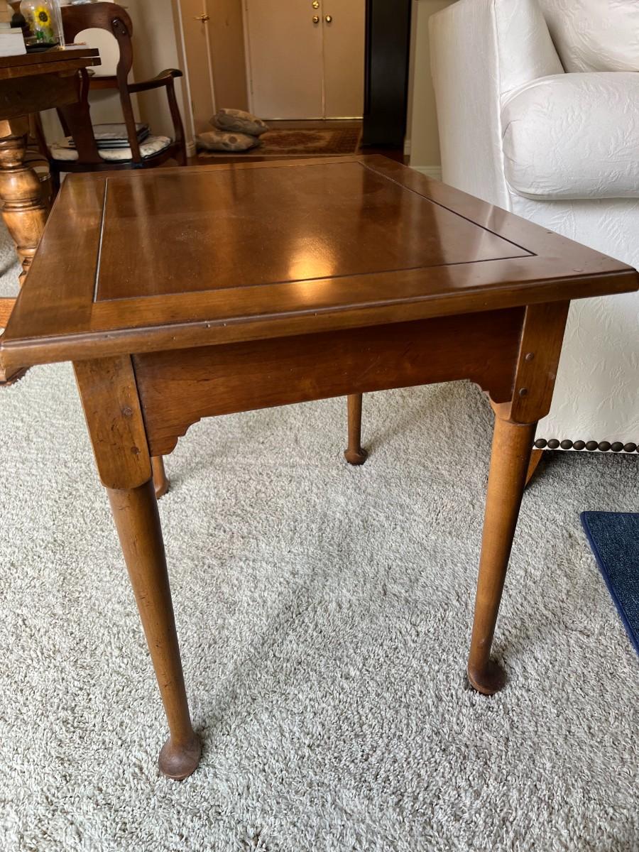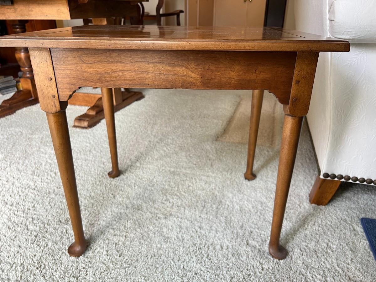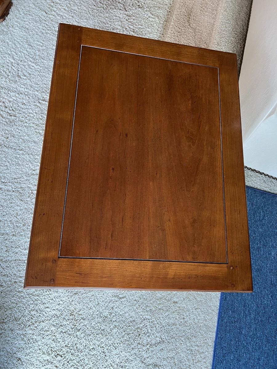 There is no significant damage to the side table and is in overall good displayable and useable condition. Check pictures for more details and for sizing.