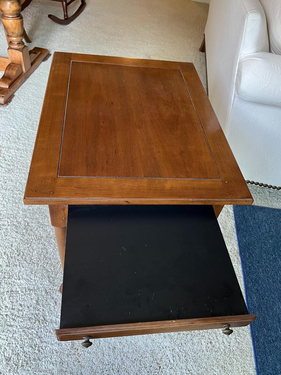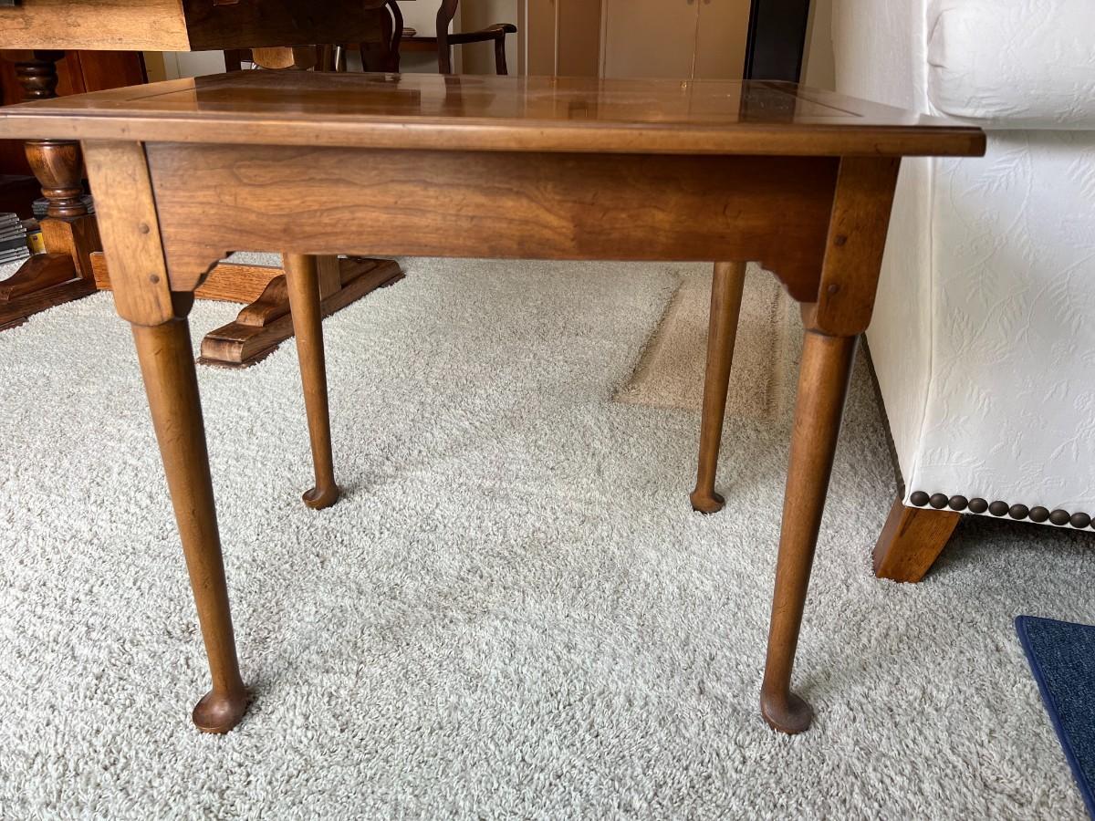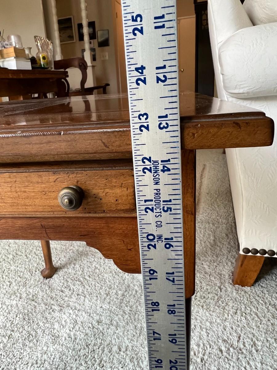 There is no significant damage to the side table and is in overall good displayable and useable condition. Check pictures for more details and for sizing.