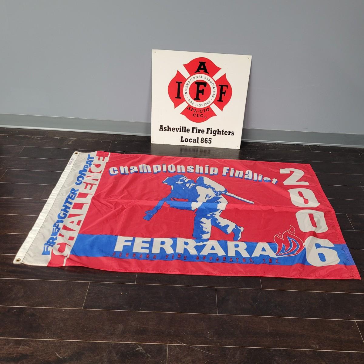 Vintage Style Asheville Fire Fighters Metal Sign and Fire Fighter Combat Challenge Flag (BR-CE)