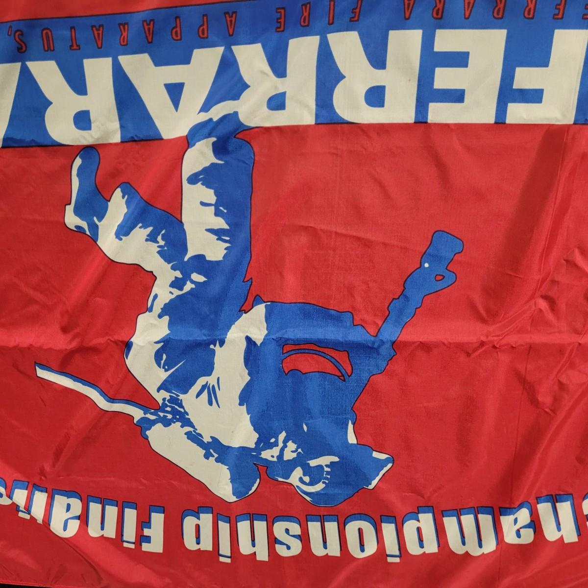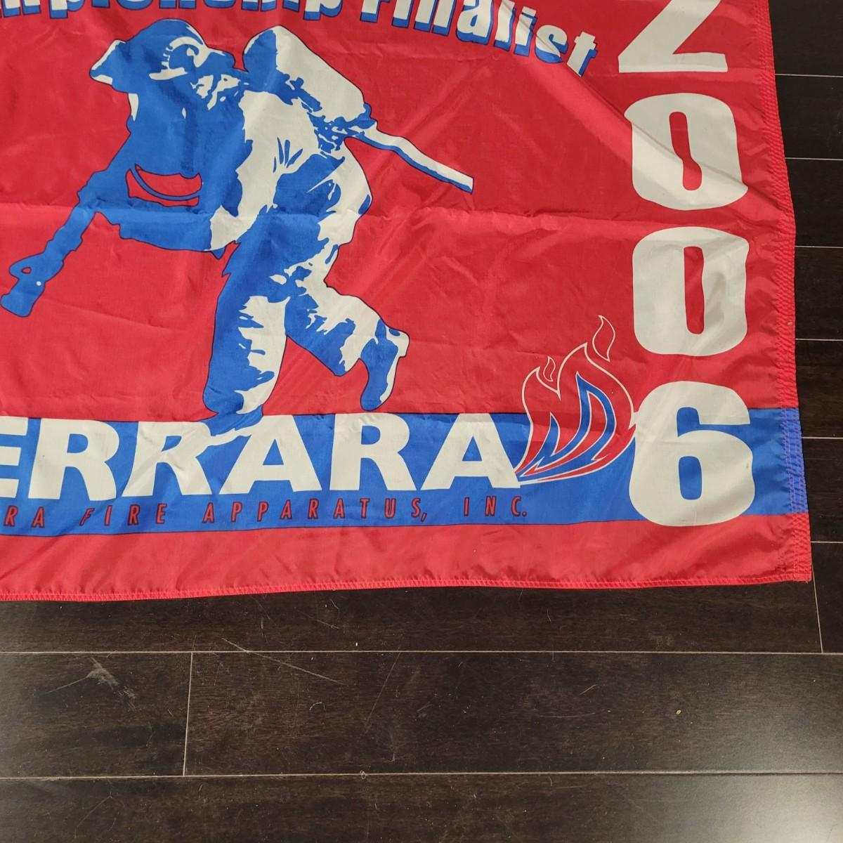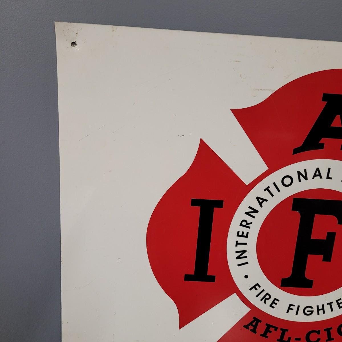 Vintage style Asheville Fire Fighters metal sign. Normal wear and tear throughout, scrapes and bends in metal (see pictures). Measures approximately 24.5" sq. Fire Fighters Combat Challenge nylon flag. Normal wear and tear with slight staining (see pictures). Measures approximately 61" x38.5". Shipping available.