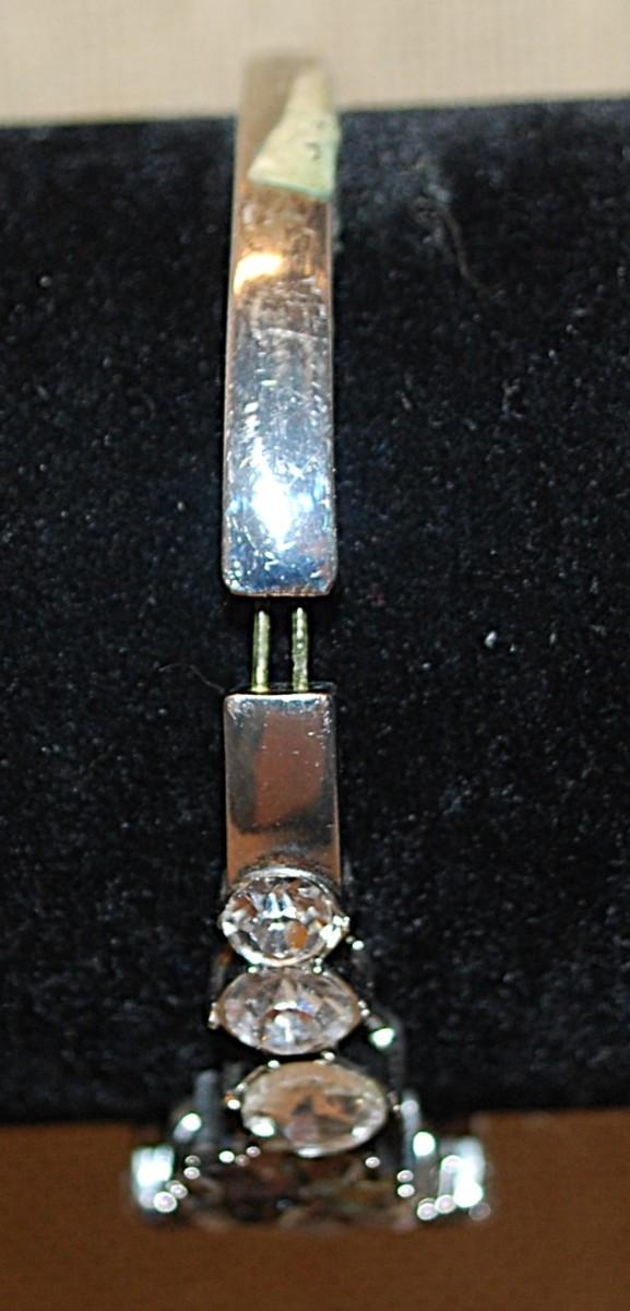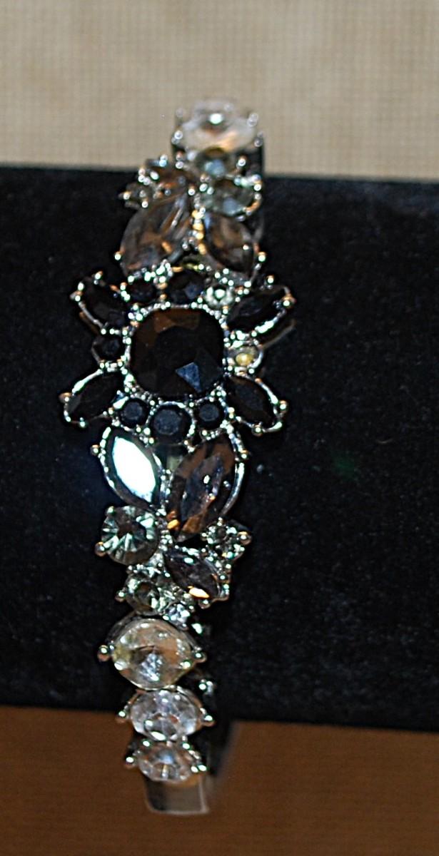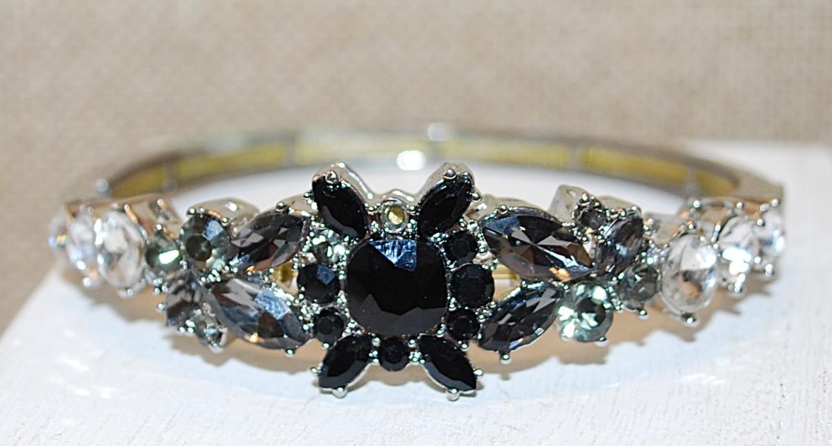 Vintage Style BLACK & CLEAR Stones Bracelet (2½" Circ.) with Elastic Pull Opening