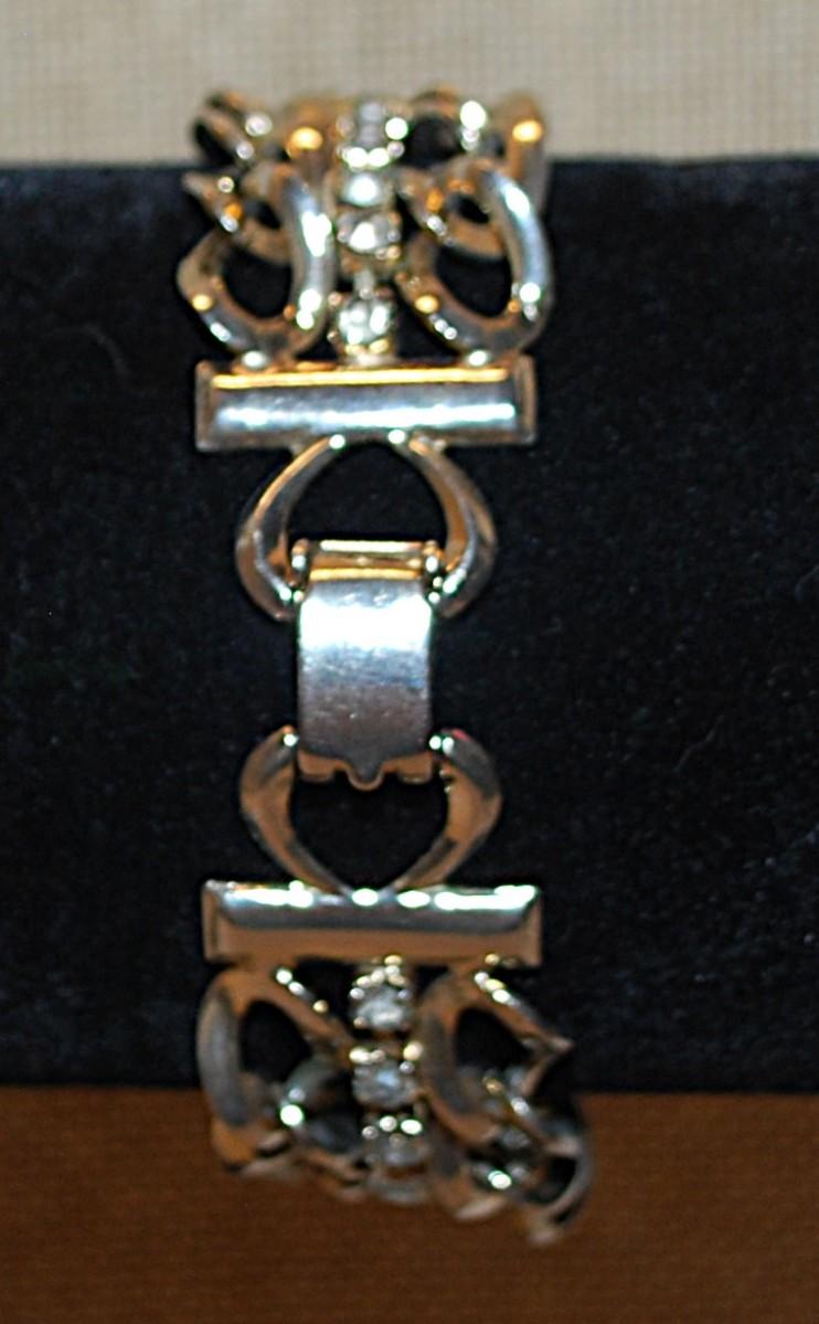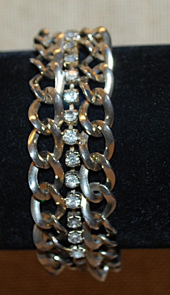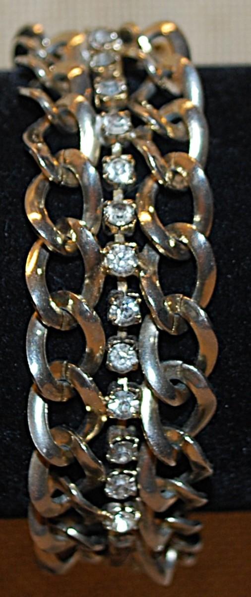 Vintage Style Chain Link Bracelet (6" L) with Full Length Middle Row of Clear Round Stones & SNAP Closure