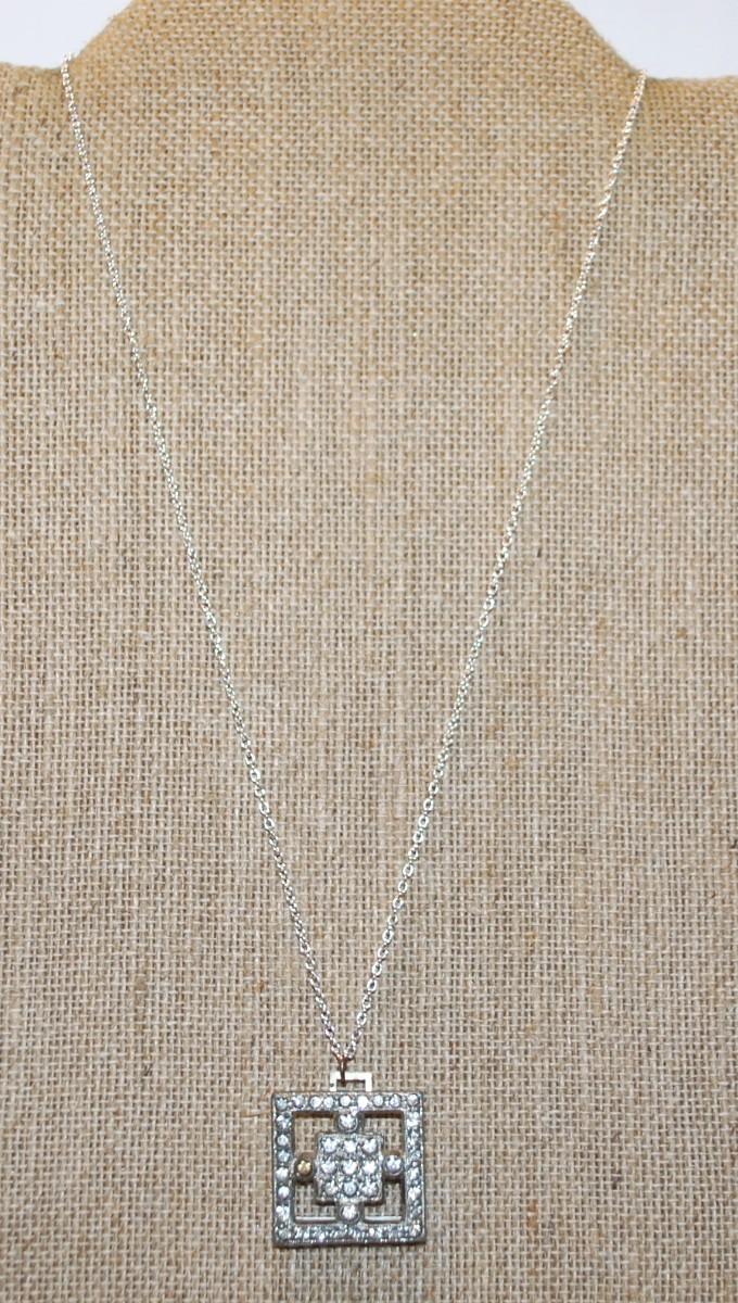 VINTAGE Style Double Square Block PENDANT (1" x 1") on a Silver Tone Necklace Chain 18" L